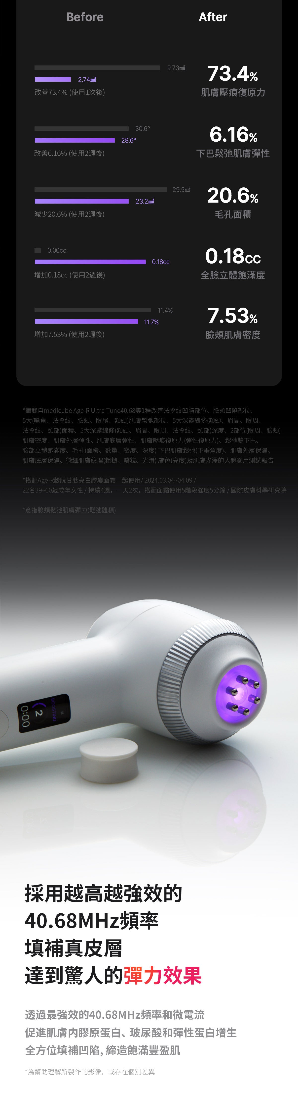 韓國首創40.68MHz RF高射頻與微電流強力結合雙重能量助肌膚進行膠原蛋白增生