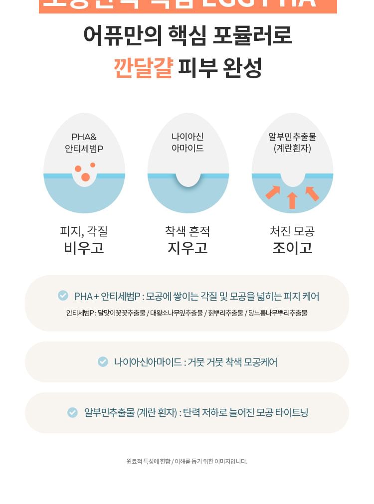 含有 Egg PHA™ 配方,可溫和去除皮膚角質,同時減少過多的皮脂分泌,使肌膚細緻光滑。