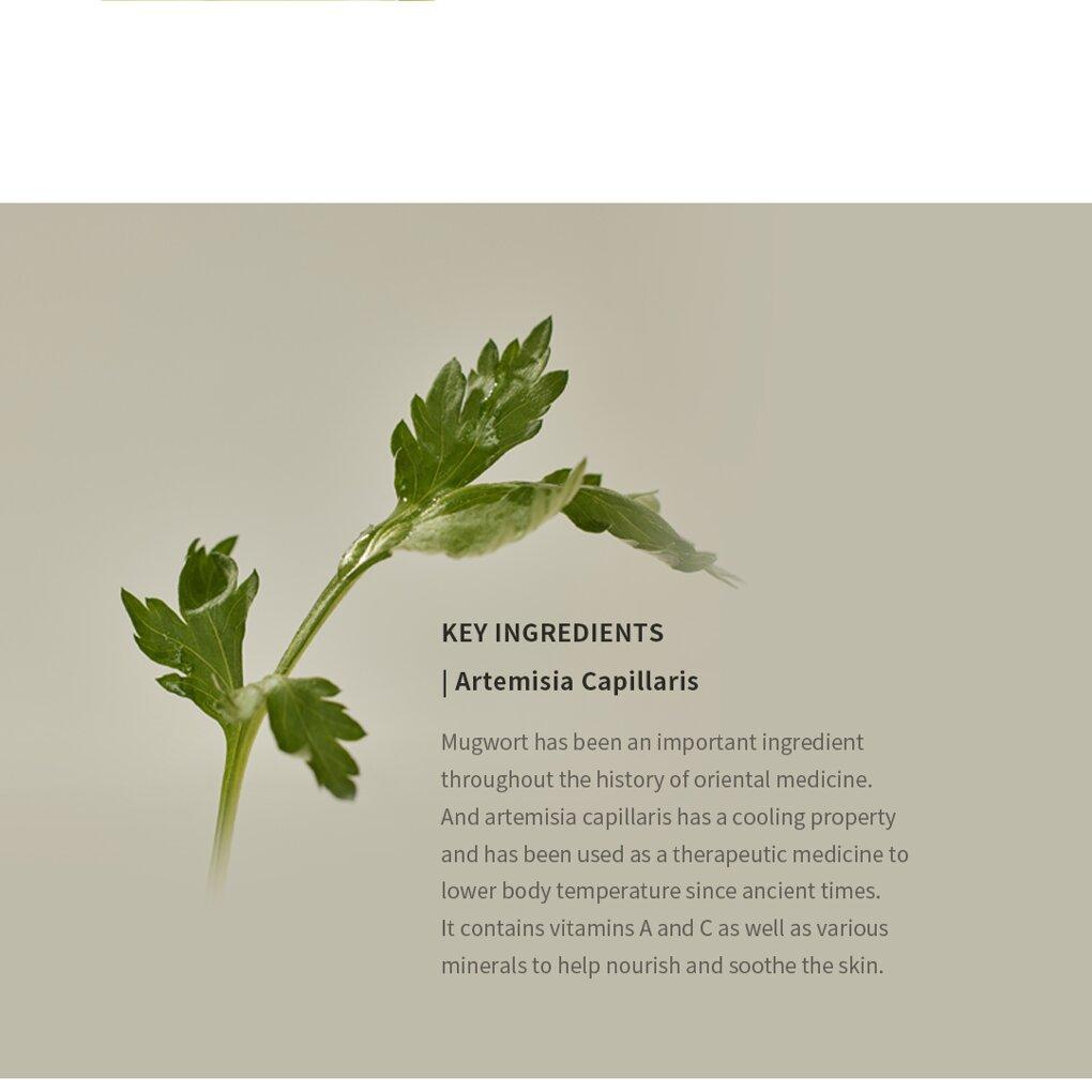 - 艾草:艾草一直是東方醫學史上的重要成分。它具有清涼性,自古以來就被用作降低體溫的食療藥物。它含有維他命 A 、 C 以及各種礦物質,有助滋養和舒緩肌膚。
