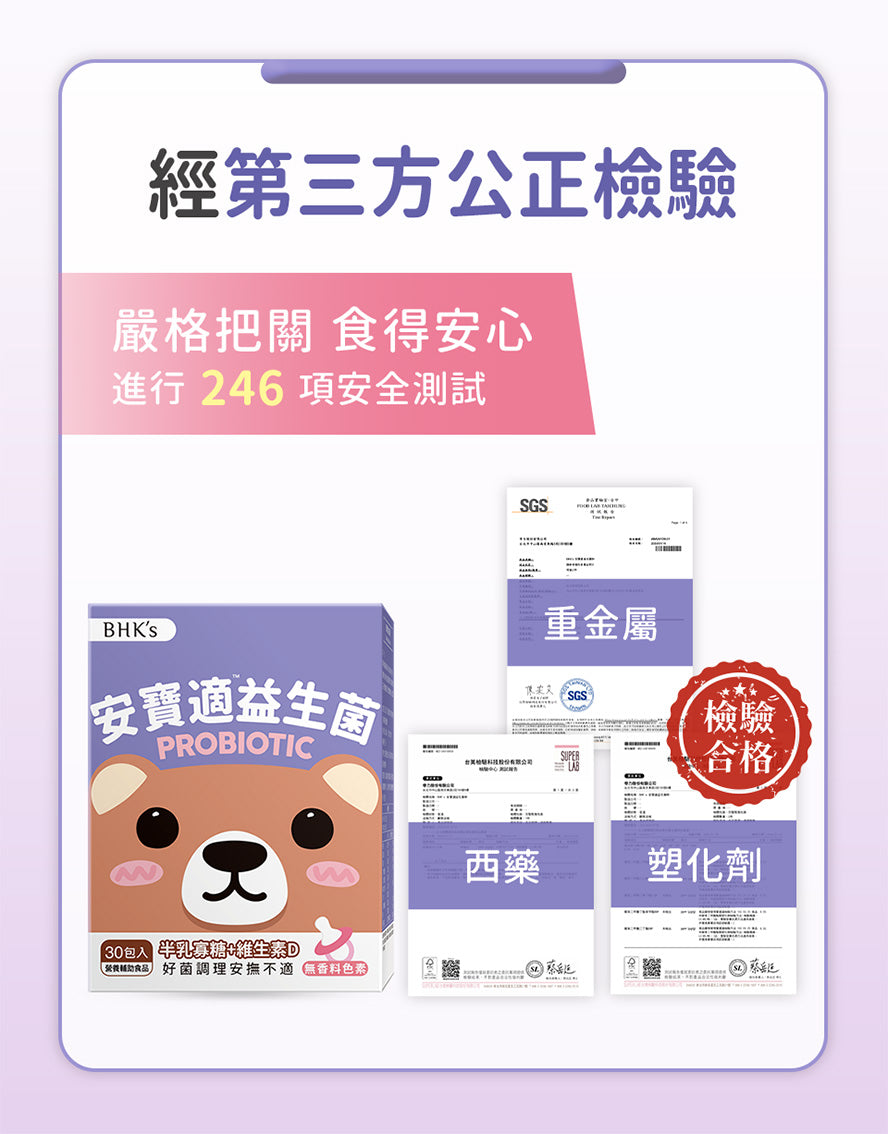 嚴選最適合嬰幼兒的3大益生菌,有助平衡消化道菌態、調整體質、維持消化道機能、幫助消化。
