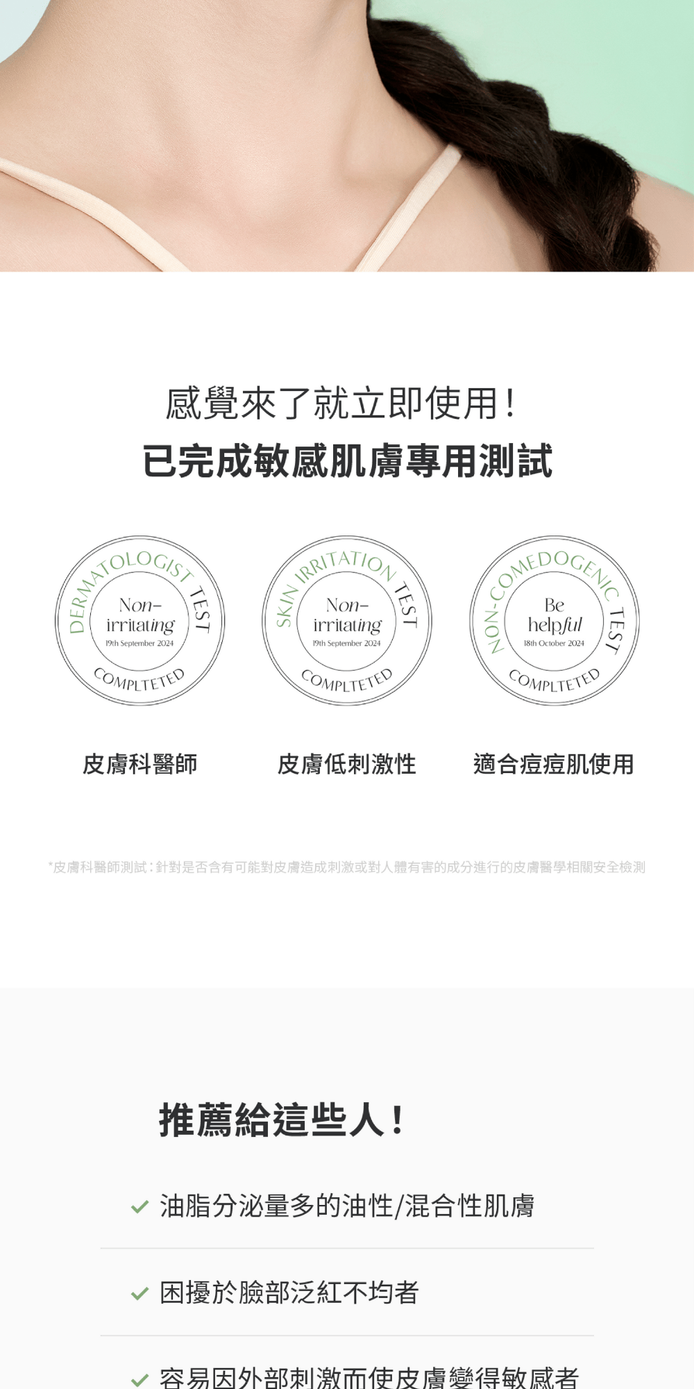 ✔ 舒緩/控油/屏障/保濕 多重功效