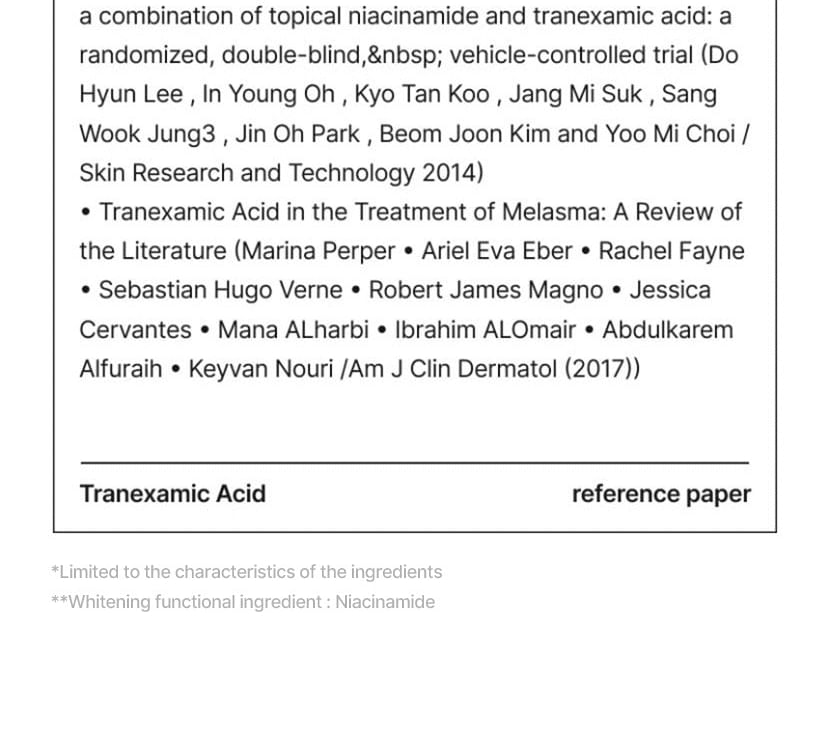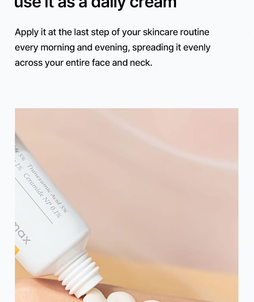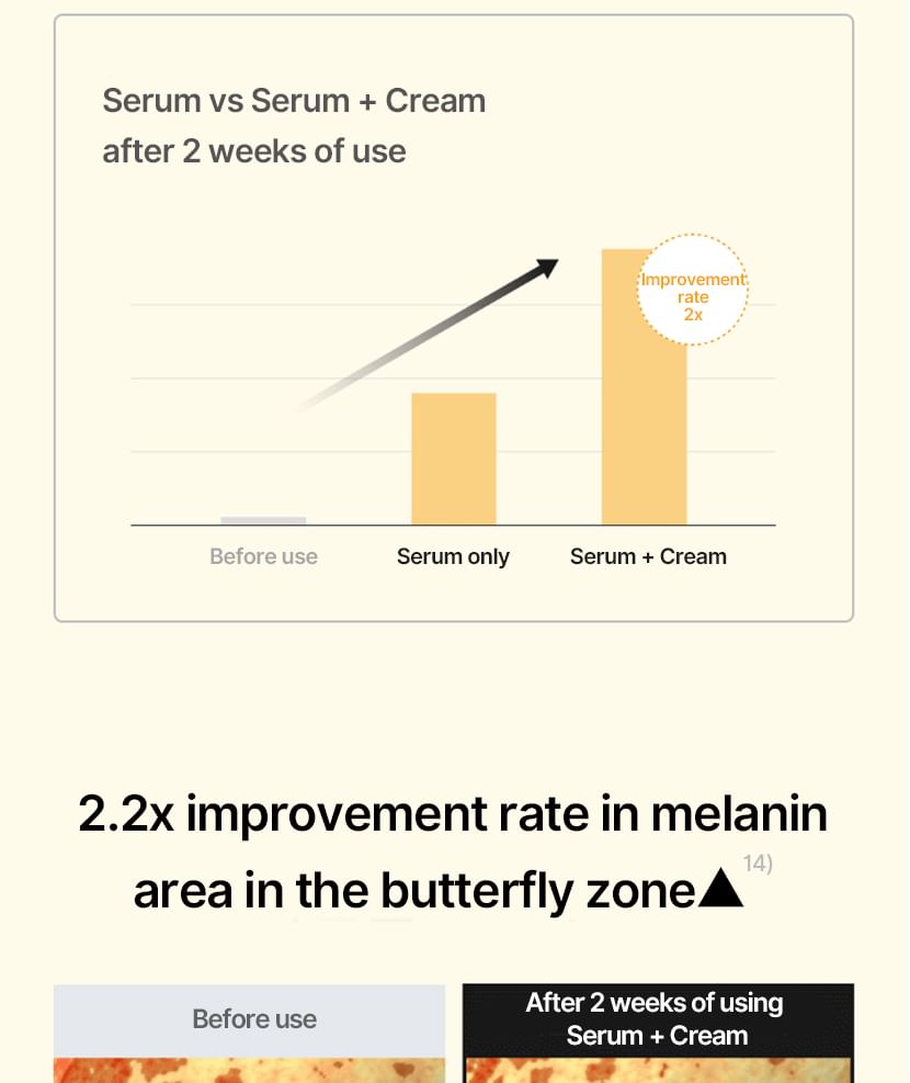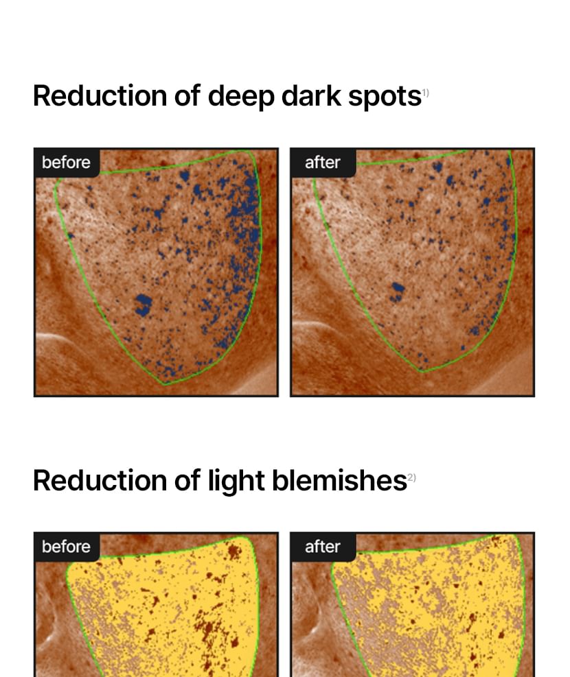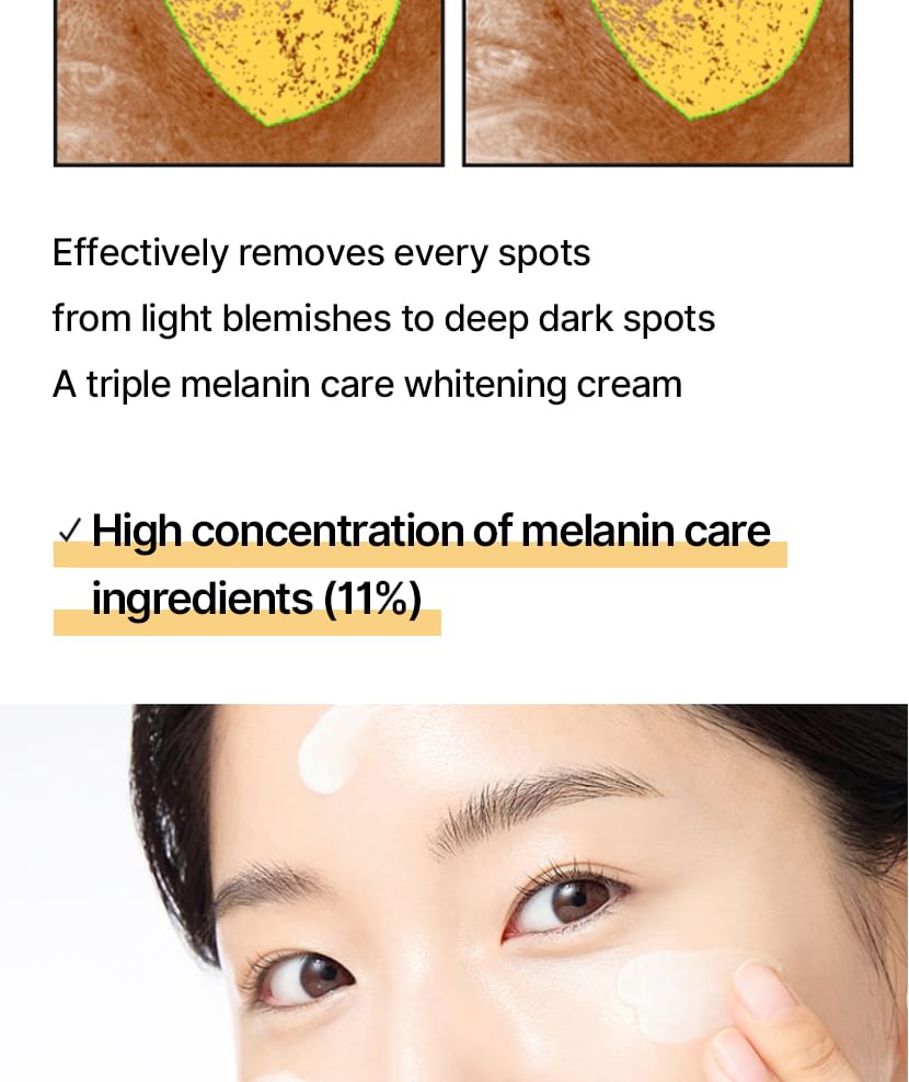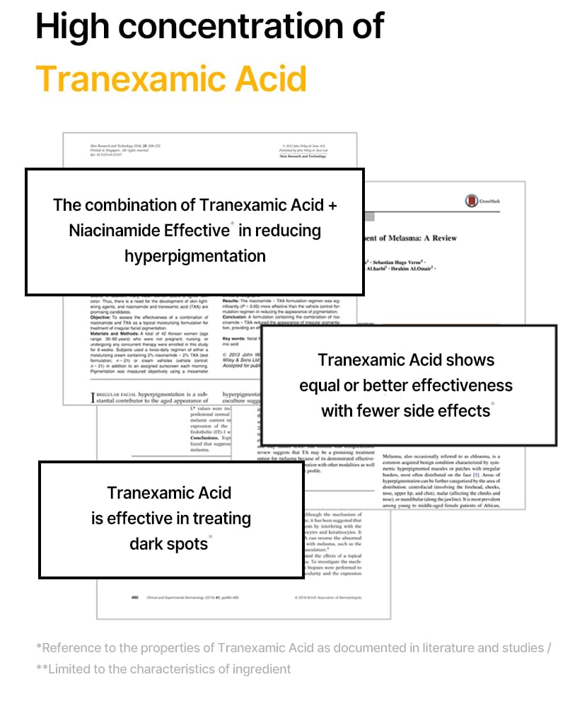 蘊含傳明酸、菸鹼醯胺和 Melazero V2 等成分,有助於抑制過量黑色素的生成,進而防止黑斑的出現。