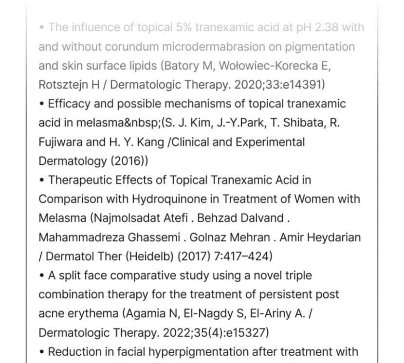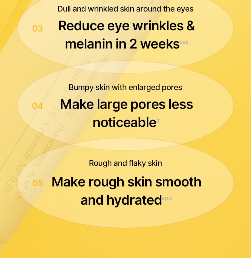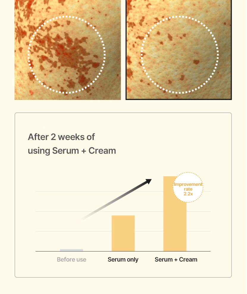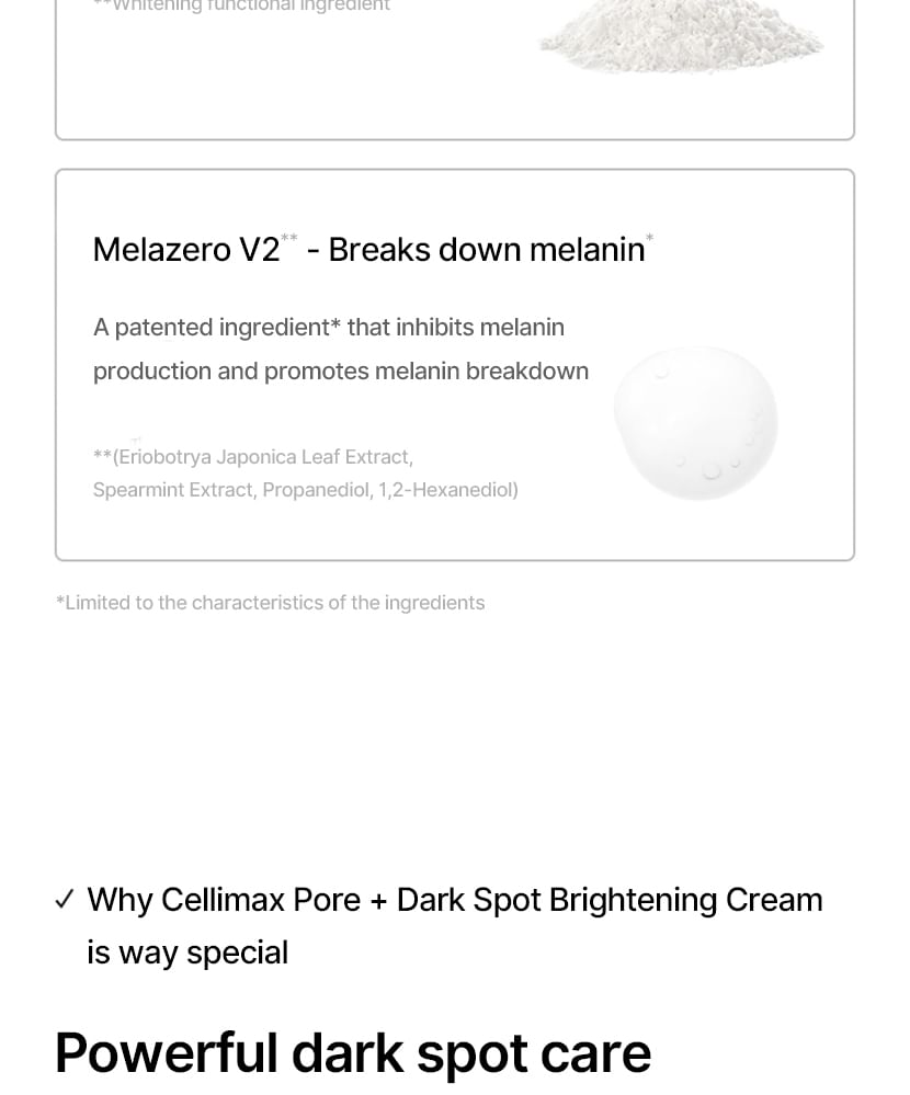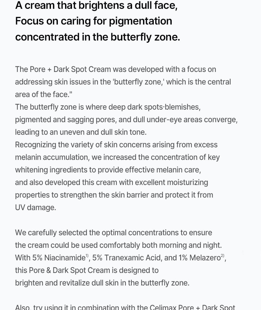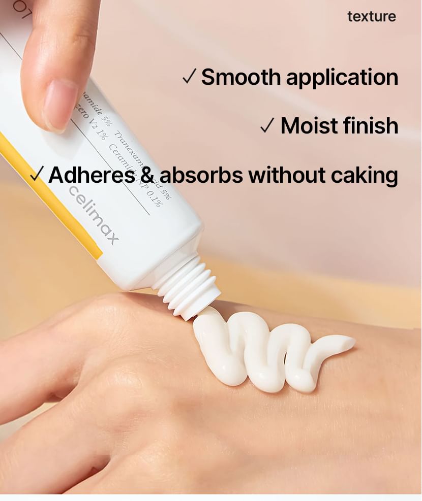 蘊含傳明酸、菸鹼醯胺和 Melazero V2 等成分,有助於抑制過量黑色素的生成,進而防止黑斑的出現。