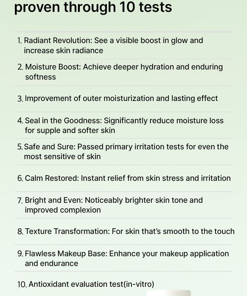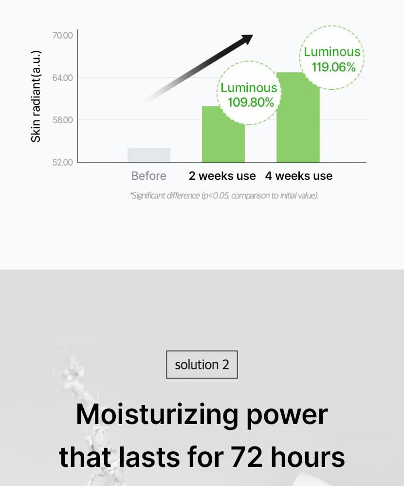 效果:捱完夜後,早上使用可讓肌膚看起來水潤、緊致,並減少暗沉和粗糙感。