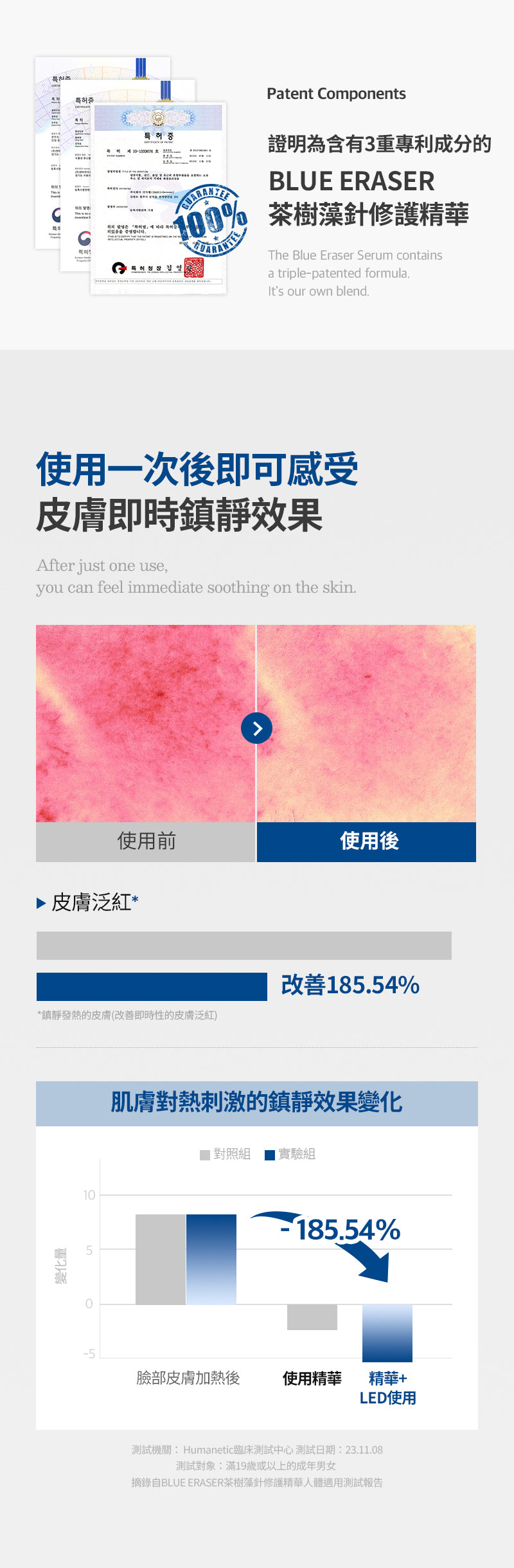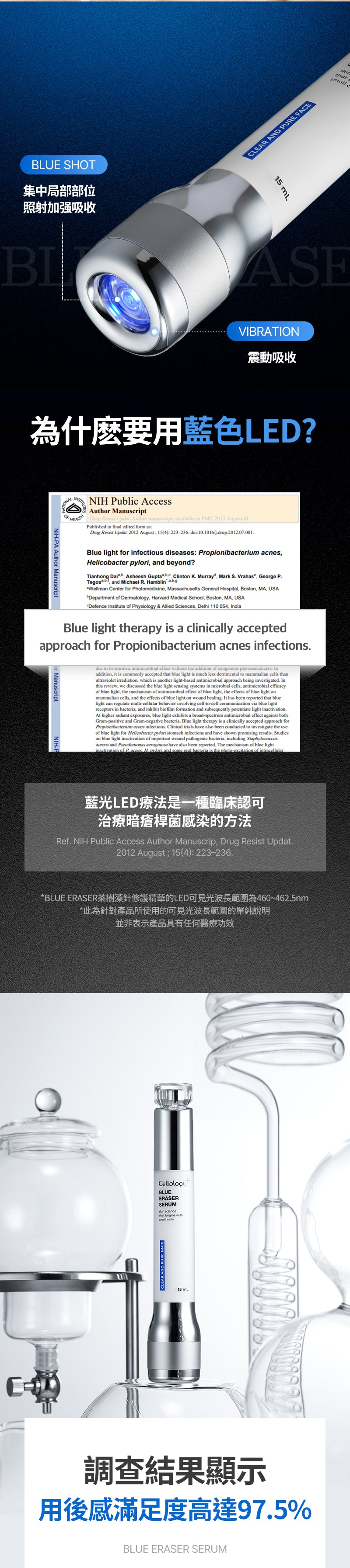 以藍色LED裝置增加吸收,改善皮膚暗瘡及泛紅情況