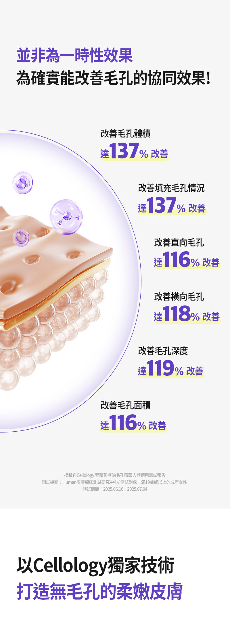 主打「一次搞定四大毛孔問題」:擴張毛孔、下陷毛孔、皮脂過盛毛孔及黑色素沉澱毛孔。被譽為油皮/混合肌的救星,強調從根源控油、收細毛孔、提升彈性,臨床實證使用後毛孔體積改善高達137%,2週內可見明顯變化,且不易反彈。