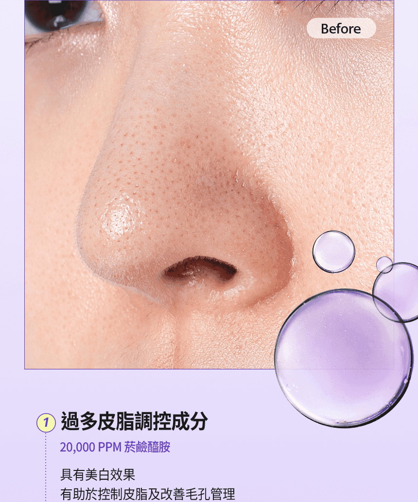 - 強效控油,減少T字出油與皮脂堵塞。