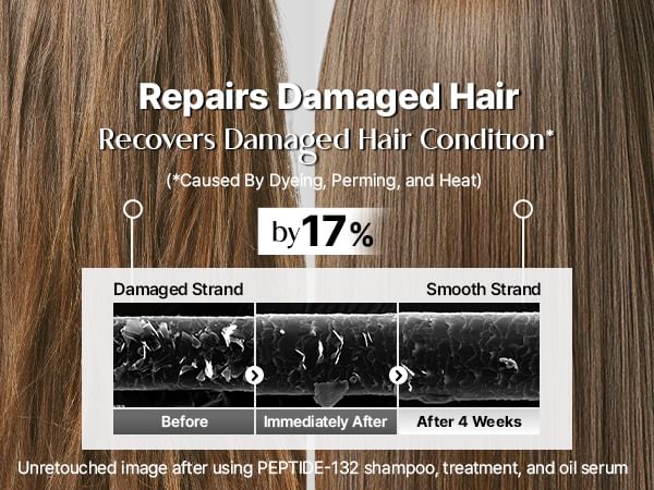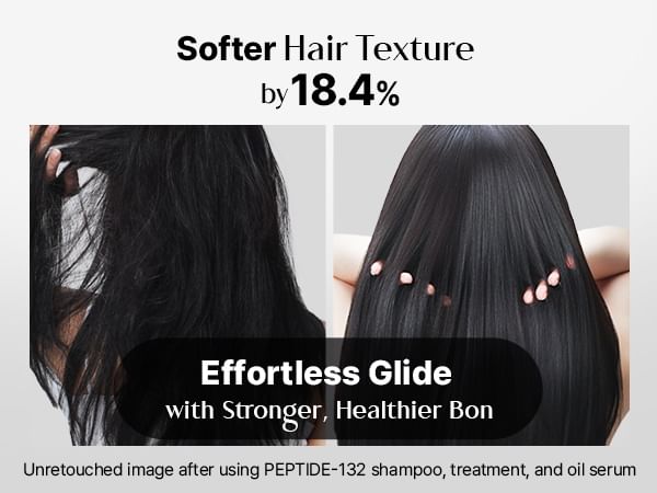 • 針對飛翹髮絲、分叉和粗糙質地,需平滑修護