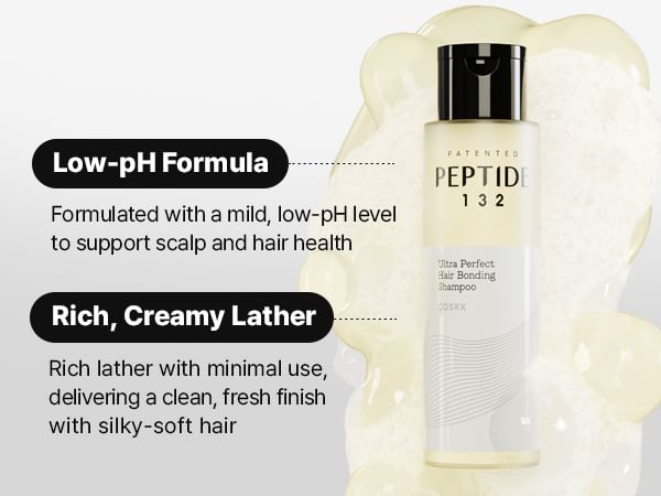 COSRX PEPTIDE-132 極致完美鍵結洗髮精是一款專業級修護洗髮精,專為強化和修復受損髮絲而設計。採用專利PEPTIDE-132™三胜肽技術,深入髮絲分子層面修復斷裂的角蛋白鍵,幫助恢復頭髮的強韌與健康。蘊含摩洛哥堅果油、橄欖油和荷荷巴油等植物精華,溫和潔淨頭皮的同時鎖住水分,打造柔順光澤的秀髮。其輕盈配方不留殘餘,適合所有髮質,特別針對乾燥、毛躁或因化學處理而受損的頭髮。