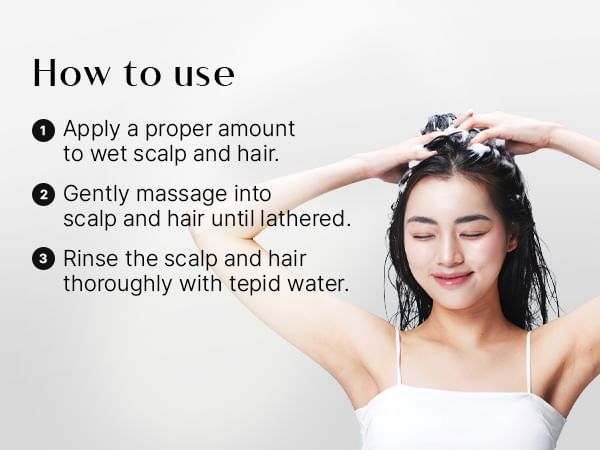 將頭髮沾濕,取適量洗髮精塗抹於頭髮和頭皮,輕輕按摩至起泡後,用溫水徹底沖洗乾淨。每週使用2-3次,建議搭配COSRX PEPTIDE-132 鍵結護髮三部曲(洗髮精、護髮療程、精華油)以獲得最佳修護效果。