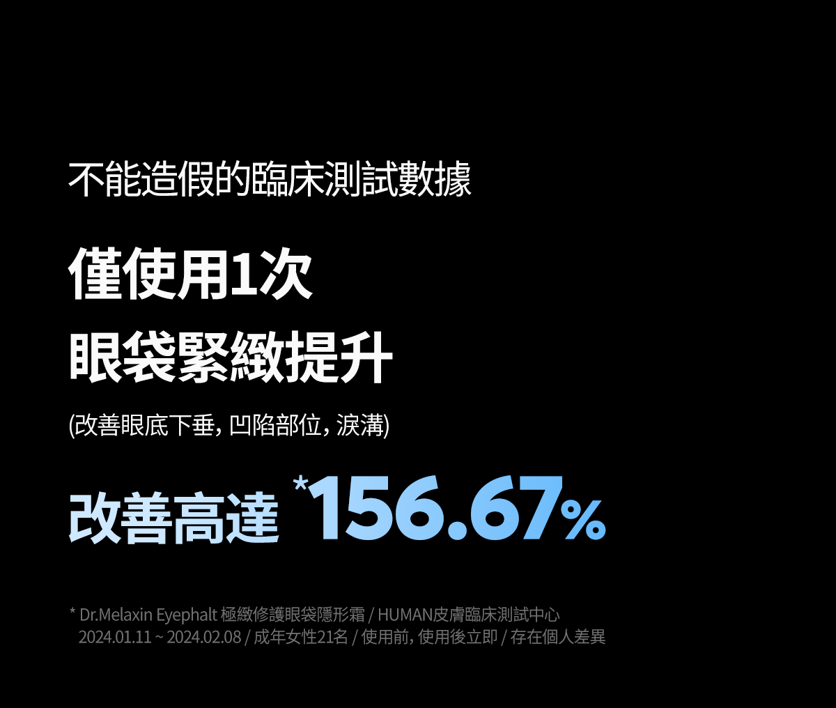 【解決所有眼周煩惱,完成眼袋緊緻效果臨床測試】