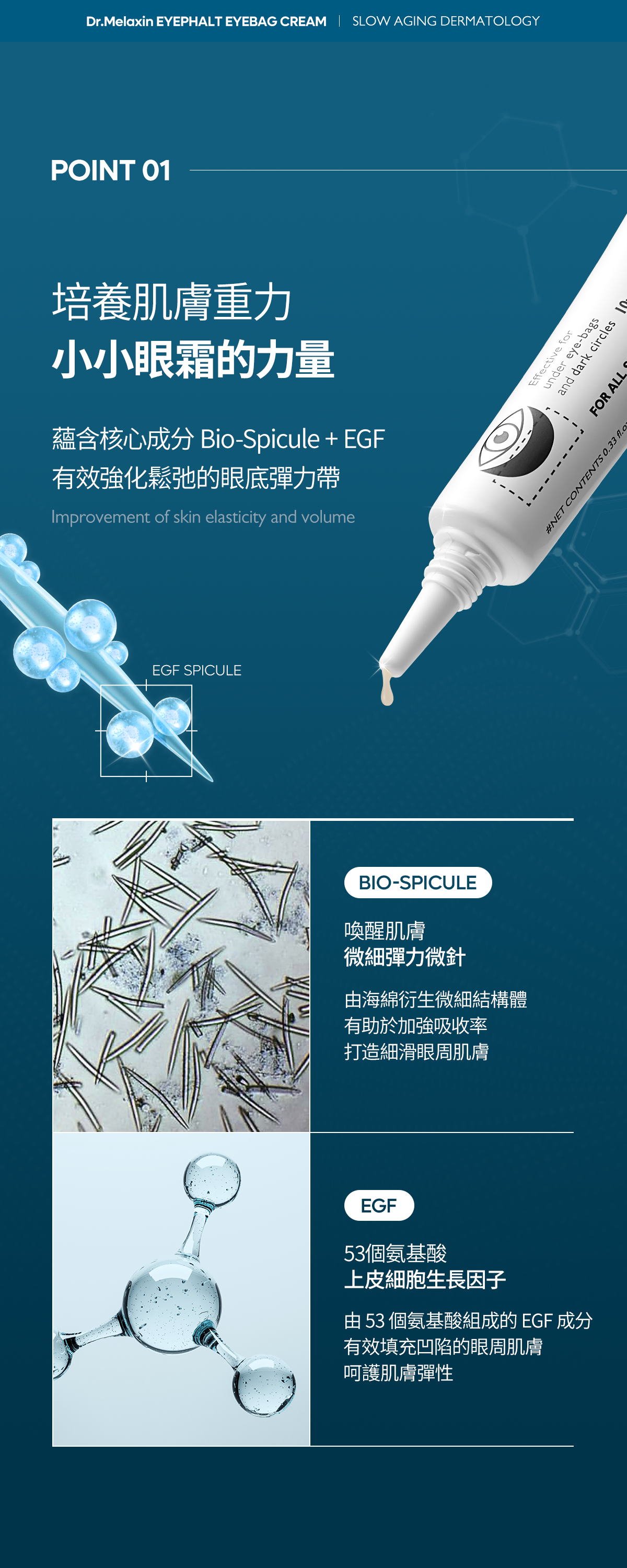 · 蘊含EGF表皮細胞生長因子和生物體微針,提升眼底肌膚彈性