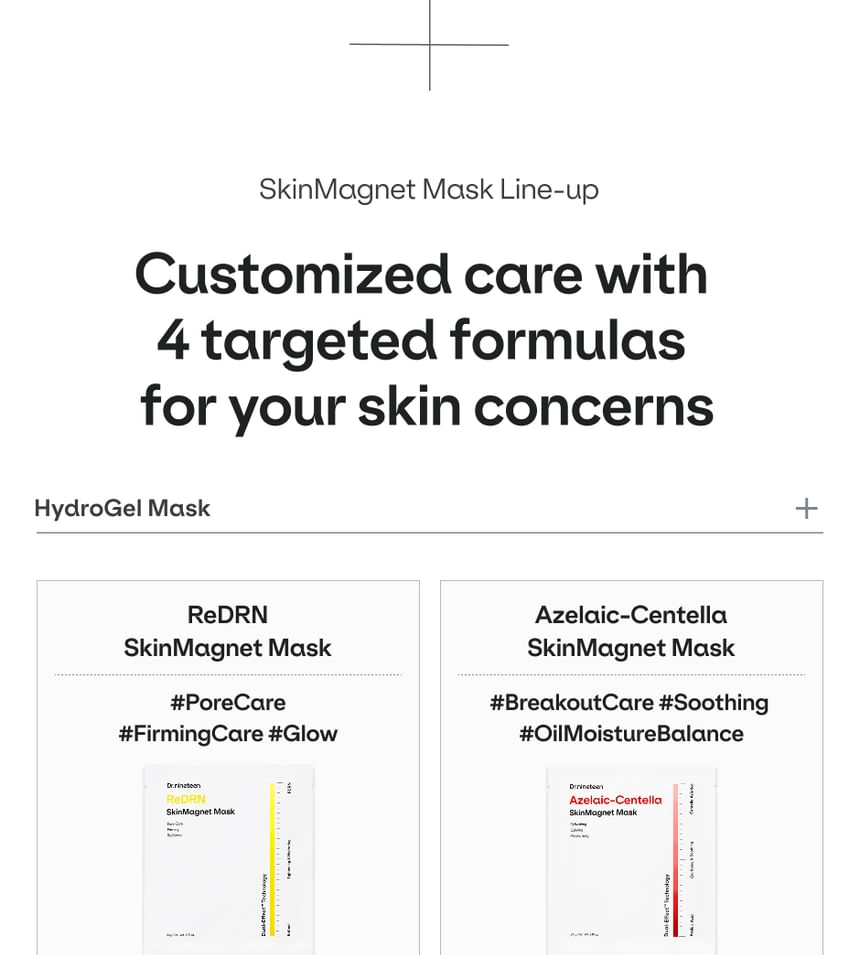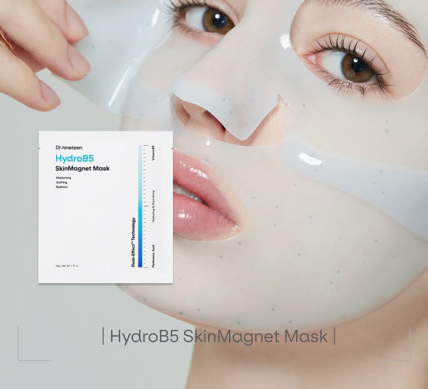 Dr.nineteen - HydroB5 SkinMagnet Mask Set 是一款專為乾燥和敏感肌膚設計的保濕凝膠面膜。它利用 SkinMagnet Technology(肌膚磁鐵技術)幫助深層補水並強化肌膚屏障,防止水分流失。