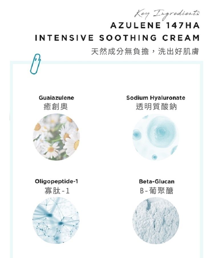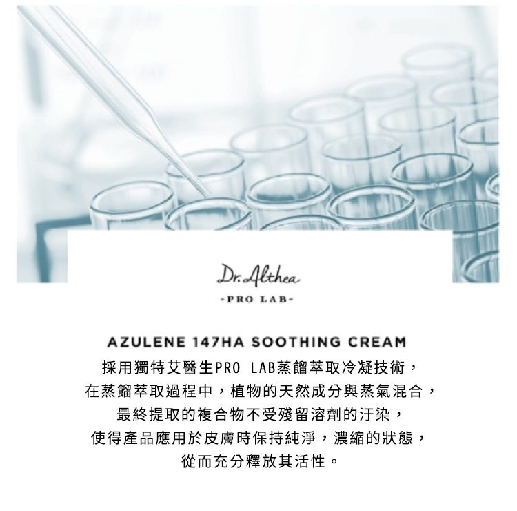 舒緩效果:源自洋甘菊花油,可有效舒緩刺激和敏感性肌膚、腫脹、發紅和粉刺改善。