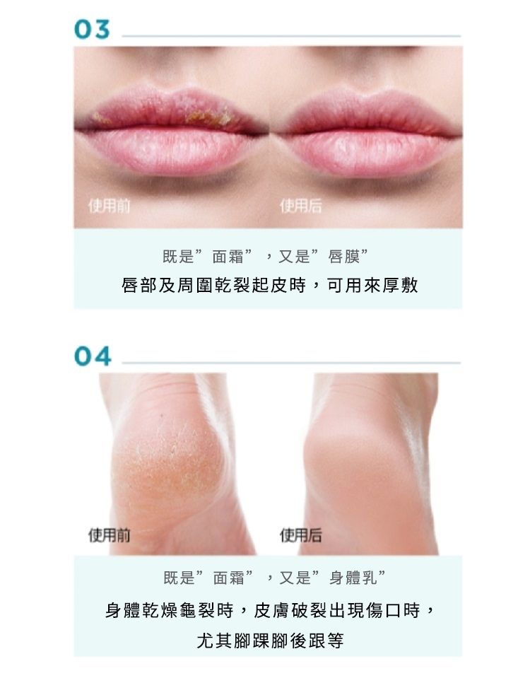 保溼能力增強:包括玻尿酸鈉,與其他保濕成分相比,其保濕效果比其他保濕成分多 6,000 倍,其保濕效果更佳,可在皮膚上形成保護性防潮層,以保護和鎖住皮膚內部水分