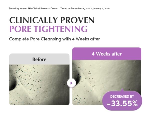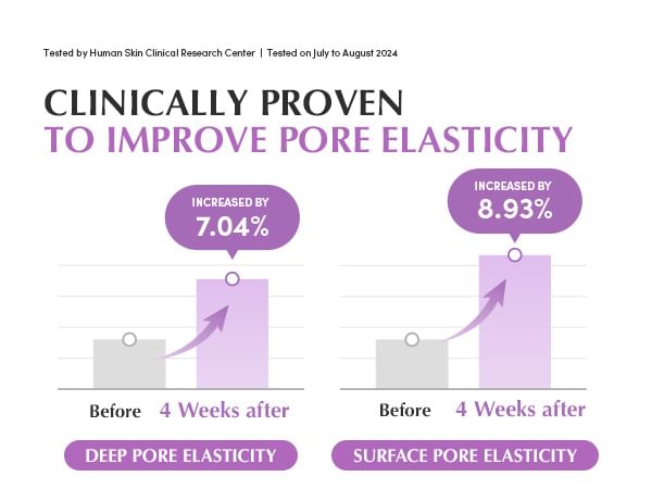 - 經臨床驗證,可收緊毛孔、撫平肌膚:經臨床測試,可使毛孔彈性提高 8.93%,皮脂分泌減少 32.7%,皮膚密度提高 12.76%,帶來明顯的毛孔細化效果。