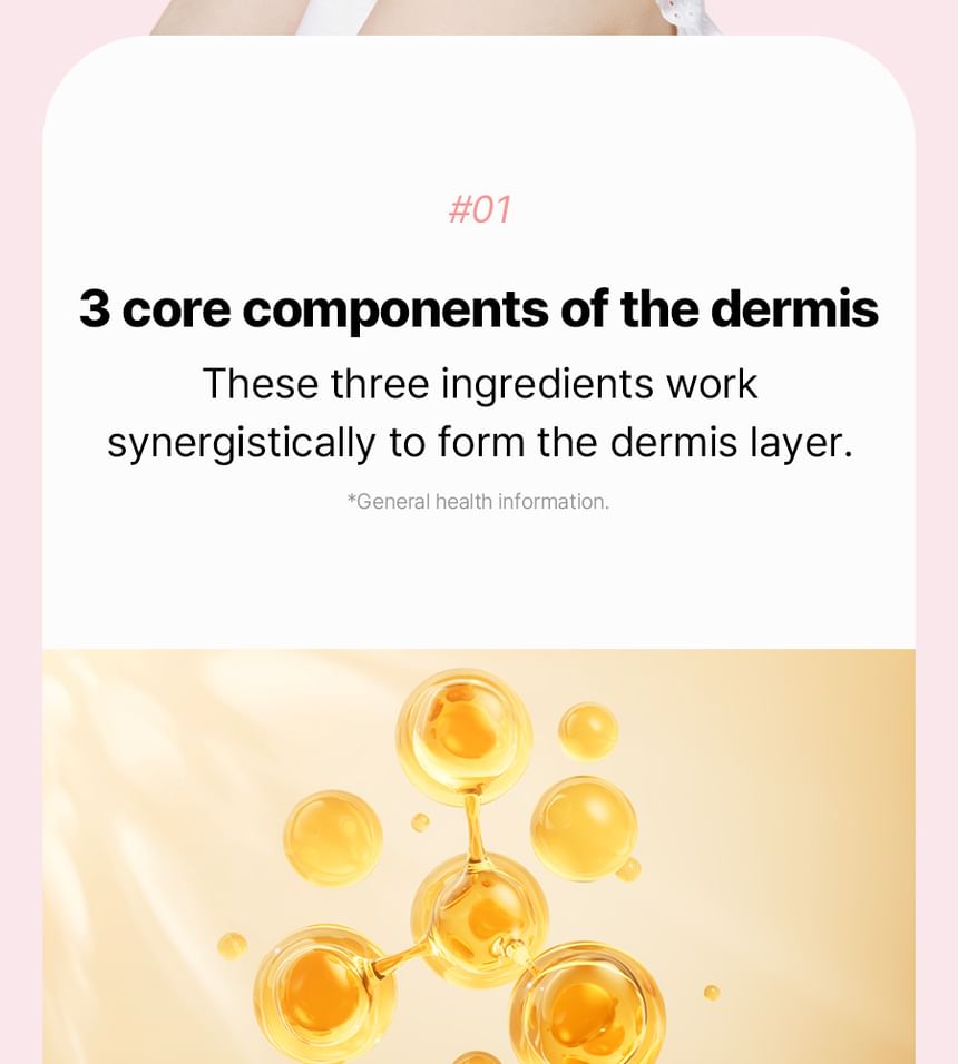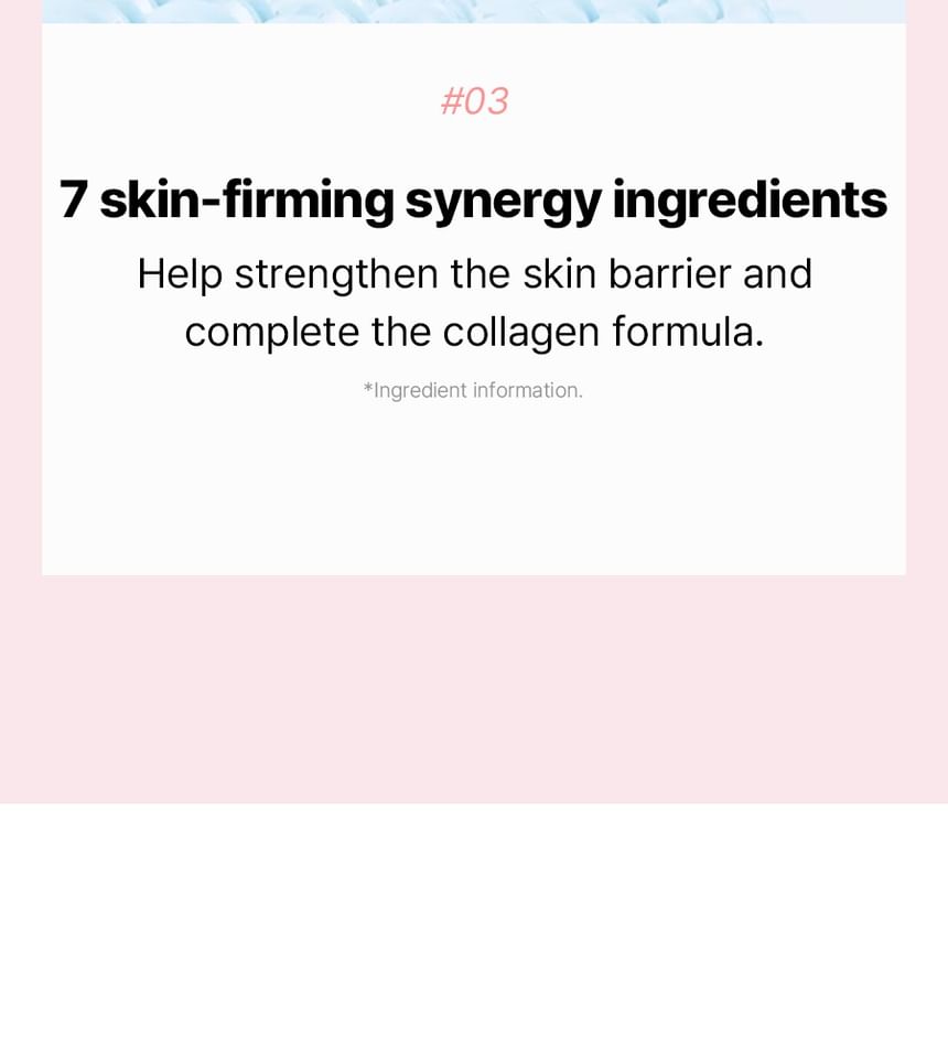 - 核心輔助成分:包括彈力蛋白(elastin)、玻尿酸(hyaluronic acid)與維生素C,幫助維持肌膚彈性、保濕與光澤。
