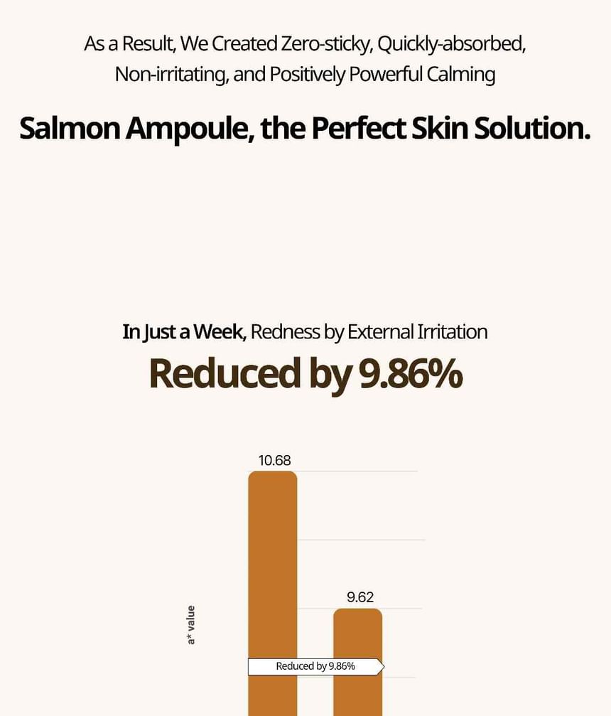 這款安瓶富含三文魚成分,可舒緩受刺激的肌膚,減少因刺激引起的泛紅。