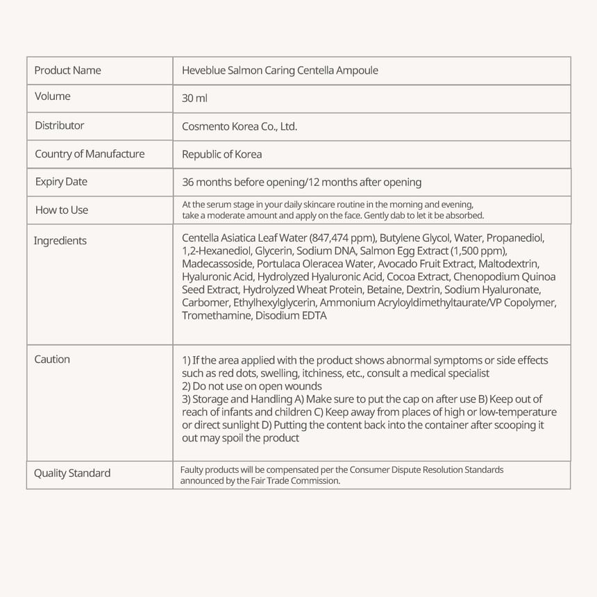 HEVEBLUE - Salmon Caring Centella Ampoule [30ml]