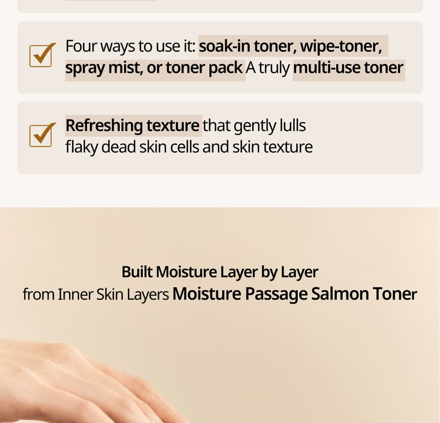這款pH值為5.5的三文魚積雪草爽膚水能夠維持肌膚油水平衡,打造完美妝容。