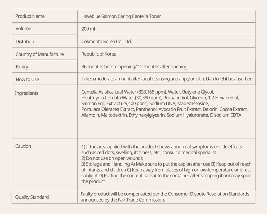 HEVEBLUE - Salmon Caring Centella Toner 200ml