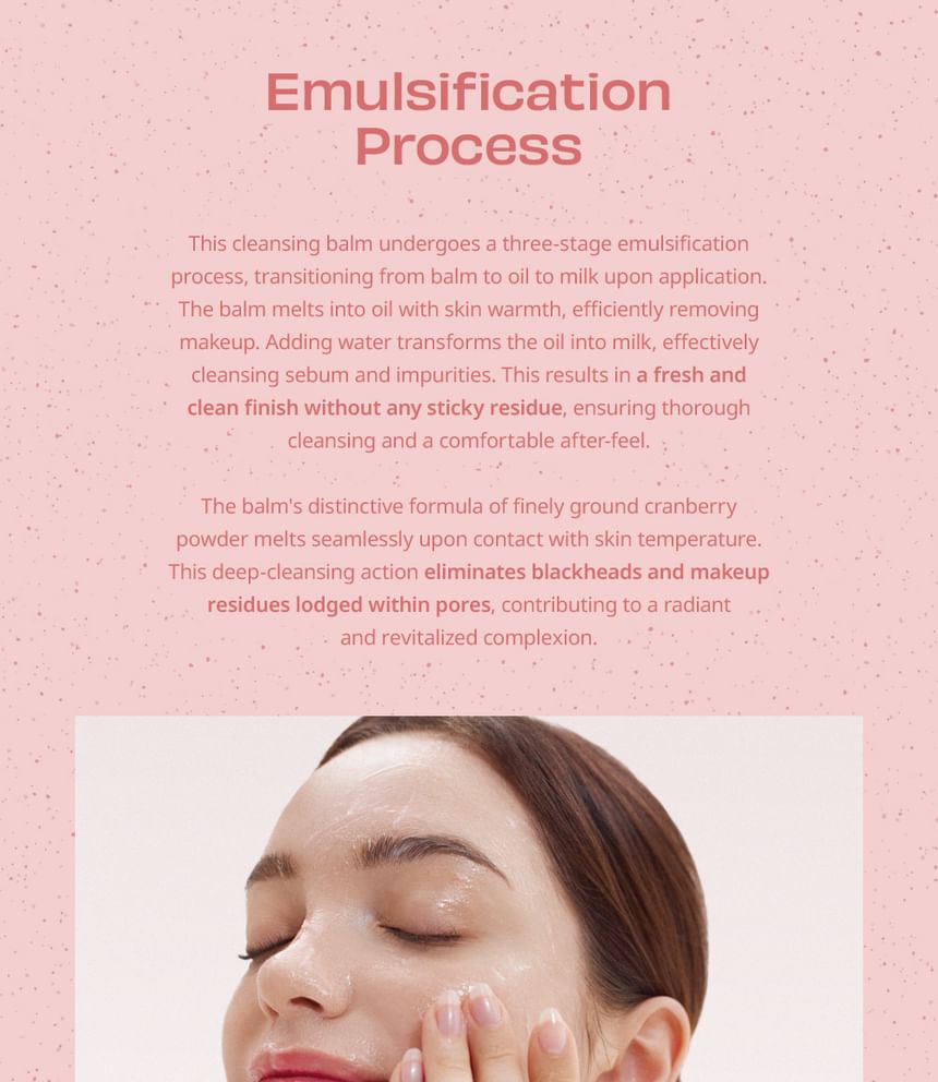 • 採用細磨蔓越莓粉配製而成,與皮膚溫度接觸後無縫融化,消除皮膚雜質和毛孔內堵塞的多餘皮脂,使肌膚煥然一新。