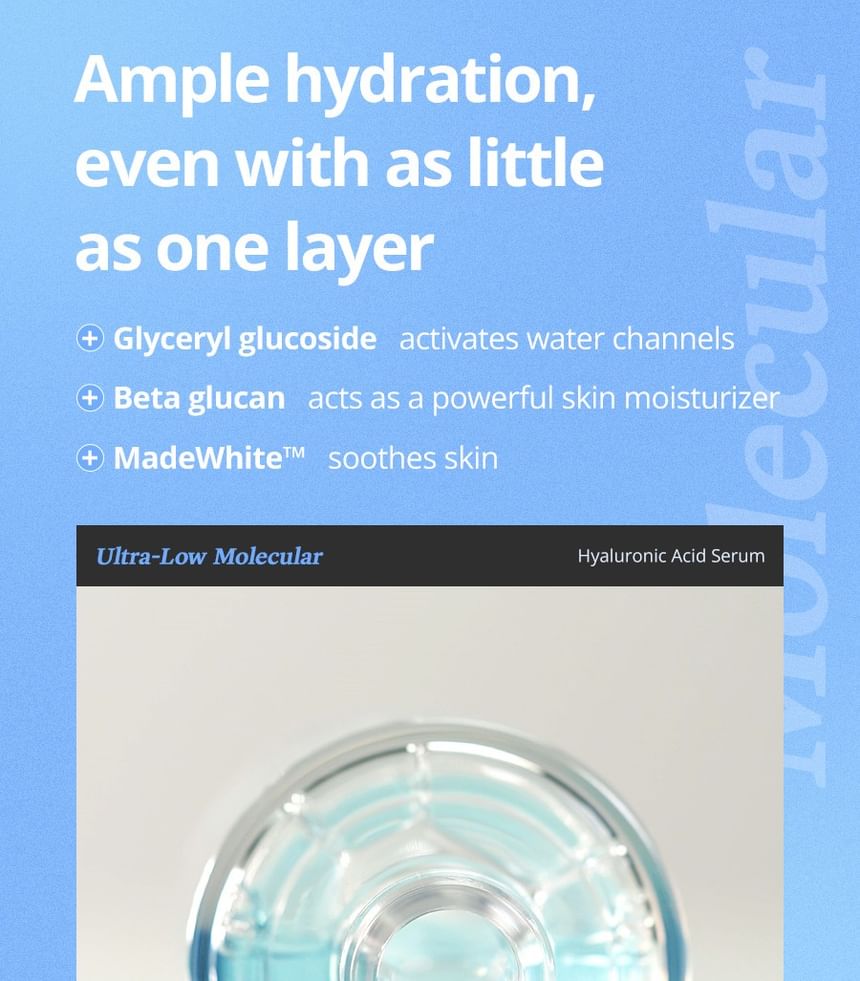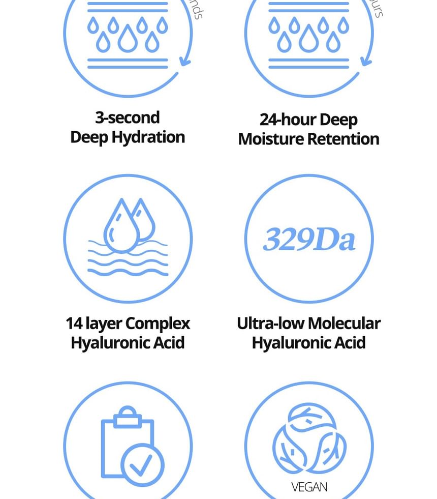 這款輕盈的純素透明質酸精華液蘊含韓國鬱陵島深層海水,能夠深層保濕並舒緩肌膚。