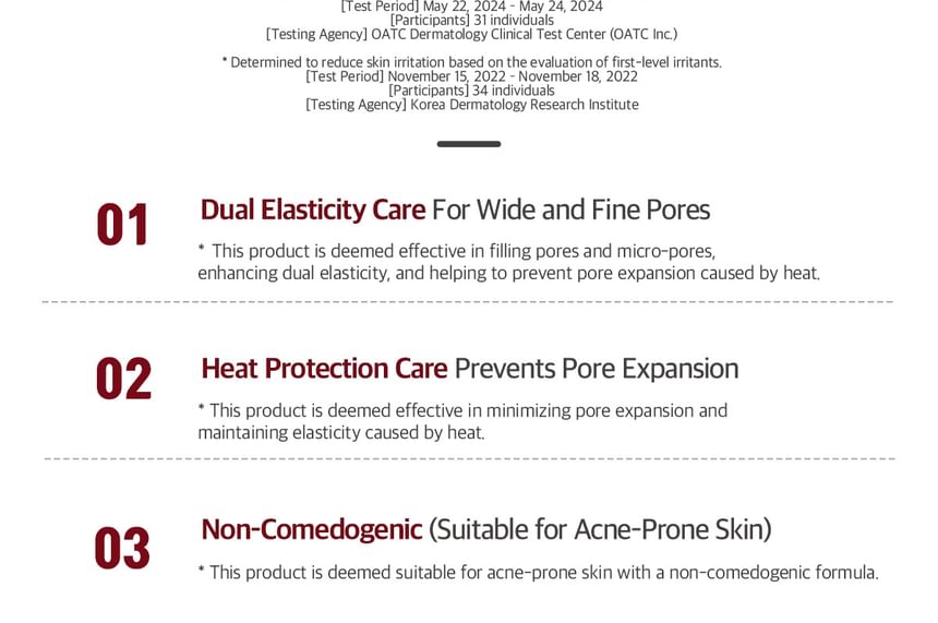 雙重彈性呵護,有效遮蓋粗大和細小毛孔,並結合熱力防護,有效防止毛孔擴張。