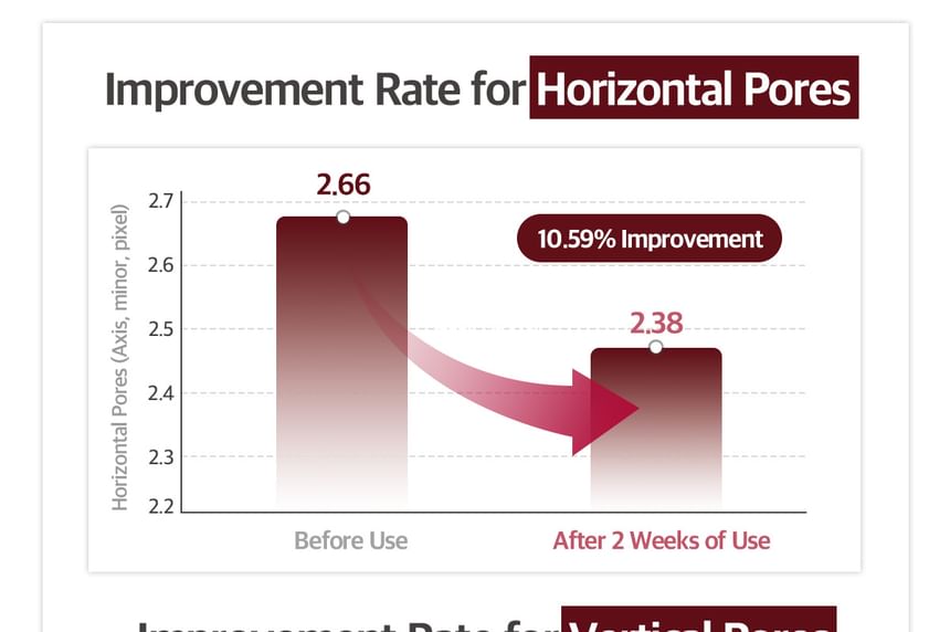 使用兩週後,橫向毛孔縮小10.59%,縱向毛孔縮小10.09%。