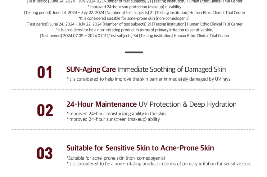 我們的防曬乳以肌膚為先,經臨床驗證,可即刻修復紫外線損傷的肌膚屏障,並長效鎖水24小時。