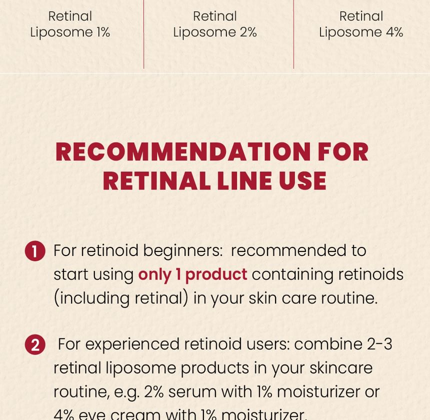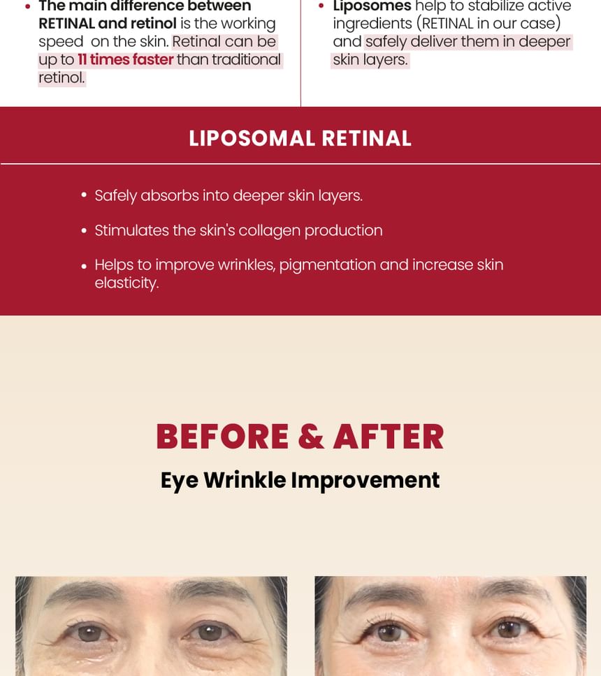 - 抗皺與緊緻:4% 視網膜脂質體針對魚尾紋、眼周細紋和鬆弛,提供類似醫美級的修復,臨床顯示可改善肌膚彈性和紋理不均。