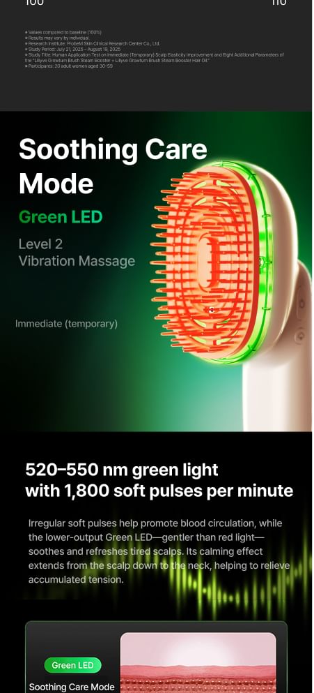 綠色舒緩模式:促進頭皮和頸部血液循環,舒緩頭皮