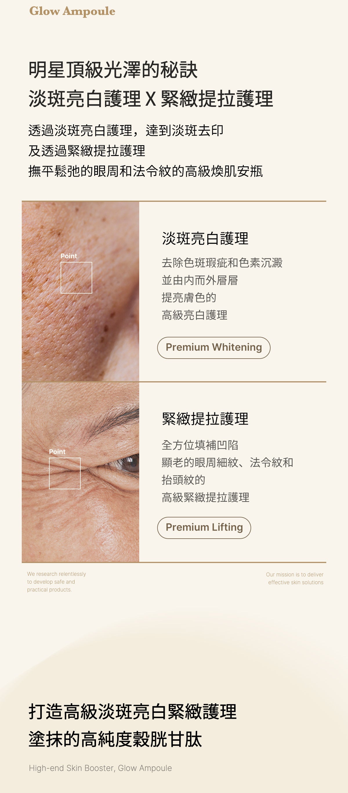 淡化瑕疵、斑點和色素沉著,同時讓肌膚煥發光彩。我們的精華液旨在明顯消除魚尾紋、微笑紋和額頭皺紋,讓您的肌膚看起來豐盈年輕。