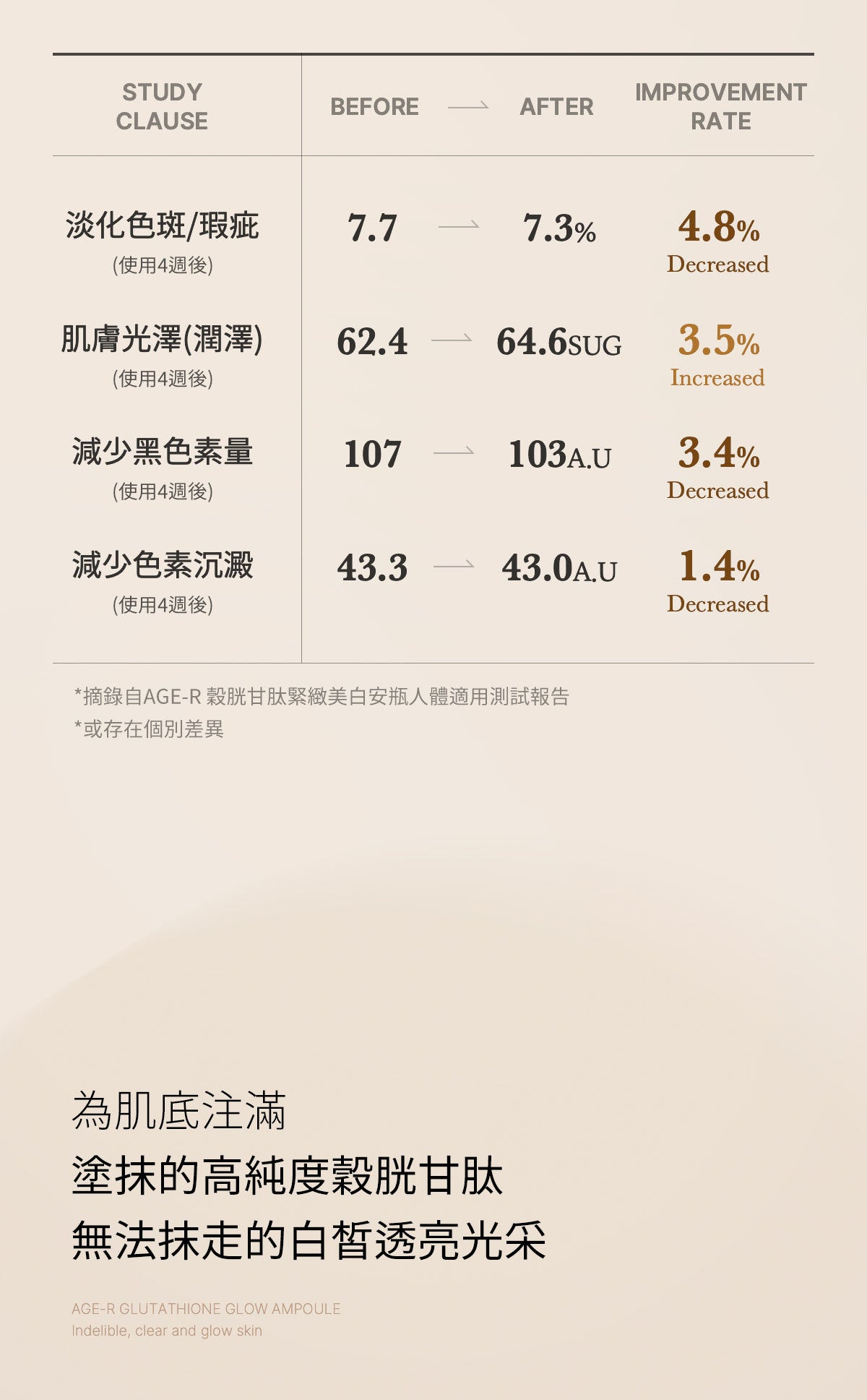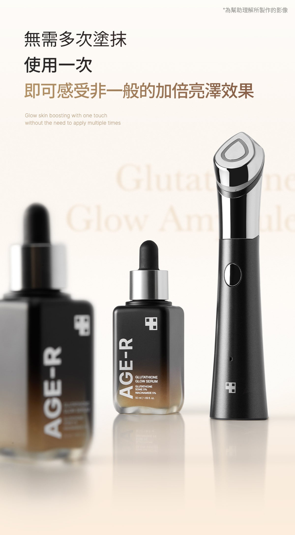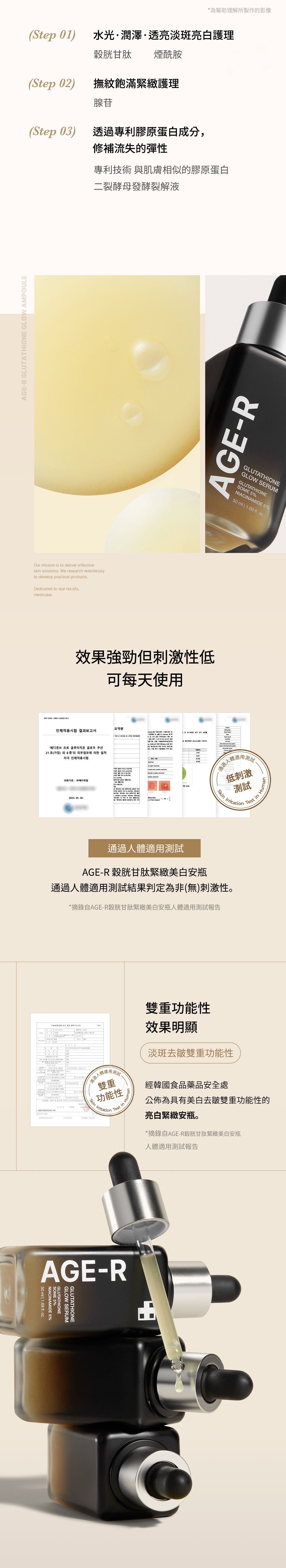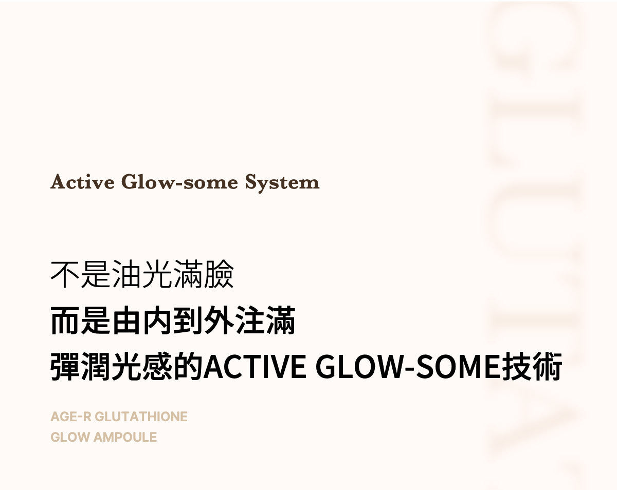 AGE-R 穀胱甘肽煥彩精華液功能強大,足以解決皮膚問題,但性質溫和,適合日常使用。透過初步斑貼測試,它被測試為低刺激性,可確保日常護膚增強您的自然美感,而不會引起刺激或不適。