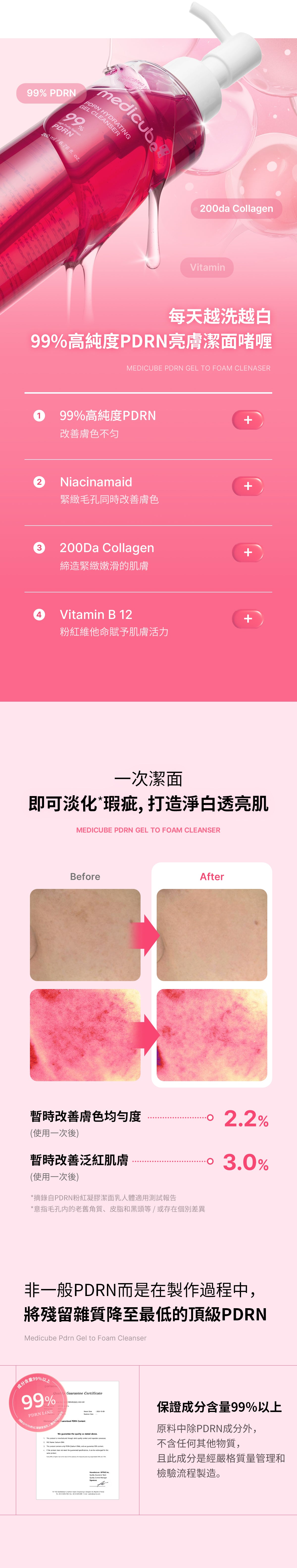 ✓ 99%高濃度PDRN, 弱酸性3PH-5PH