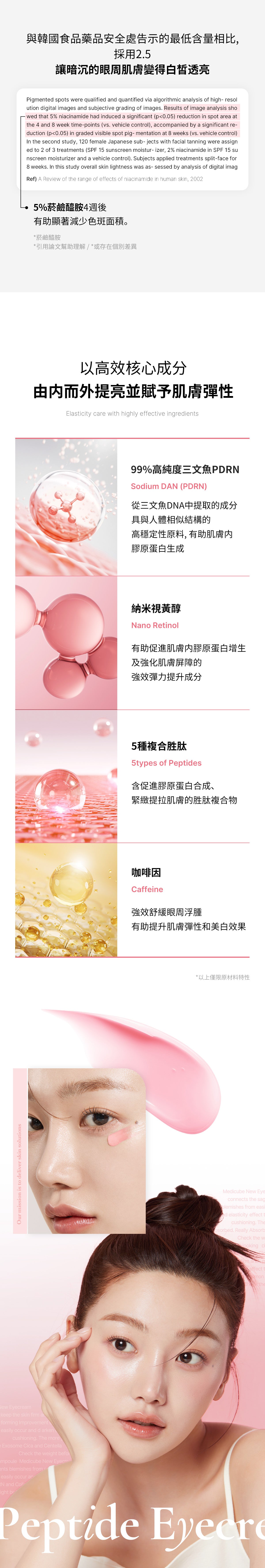 含有菸鹼醯胺、勝肽、視黃醇和鮭魚 PDRN,有助於減少黑眼圈的出現,並透過強效保濕改善暗沉的眼部區域。