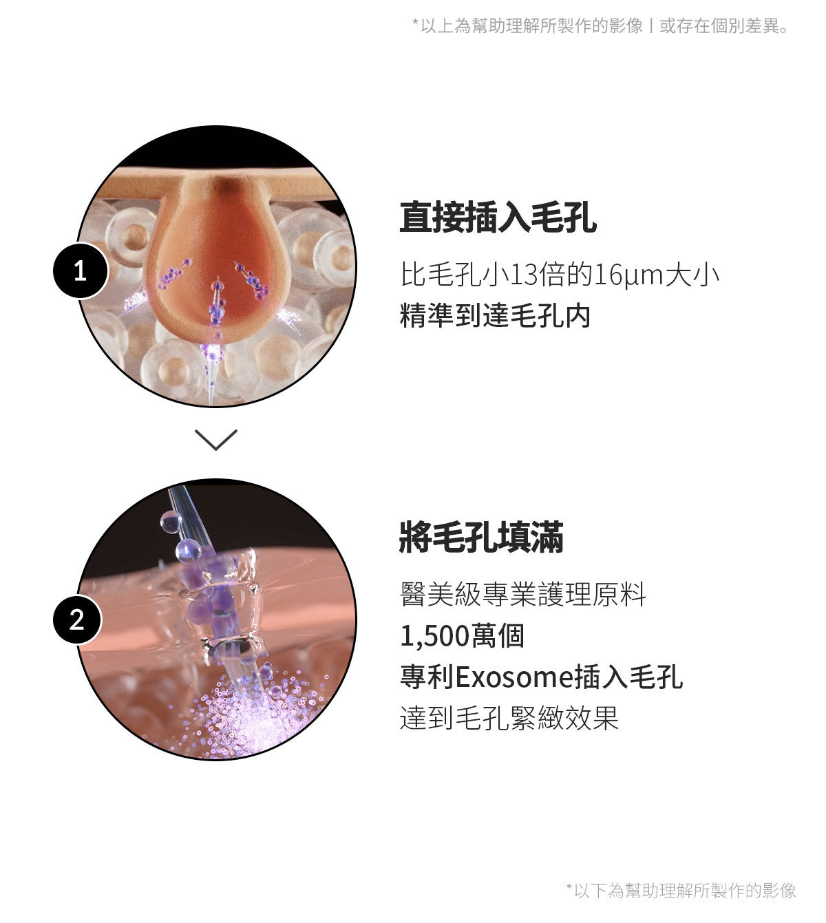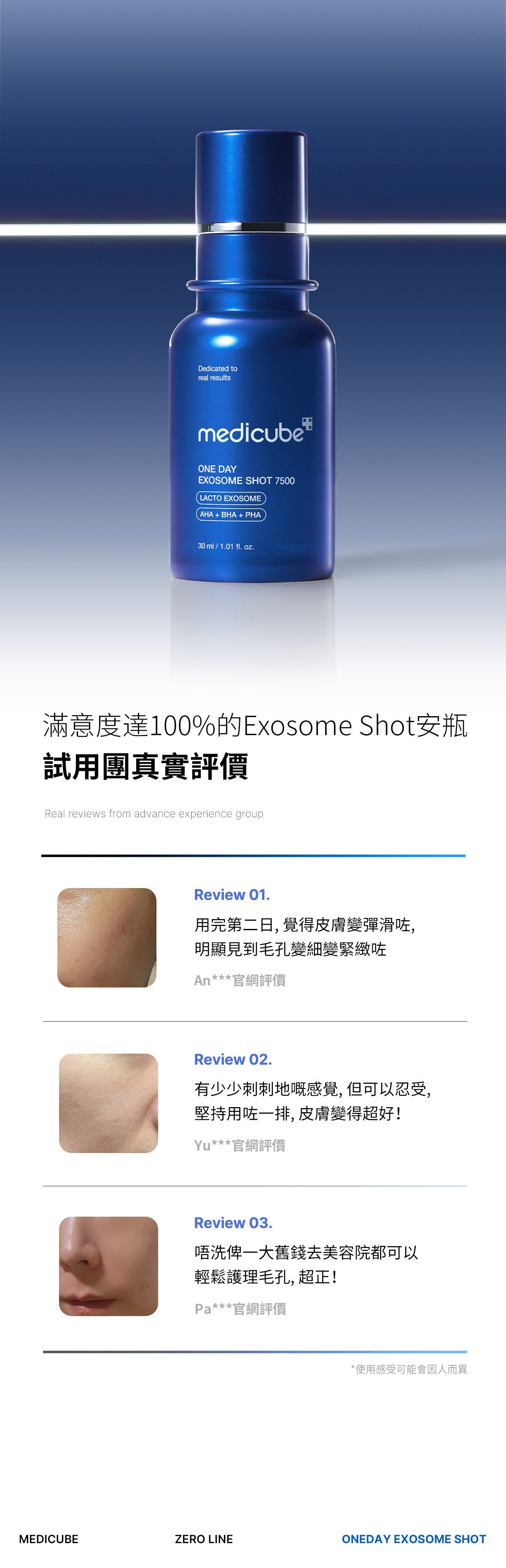 專業提示! 為了最大限度地發揮效果,請在使用 AGE-R Booster Pro 的「Air Shot 模式」後塗抹零一天外泌體精華液。 -