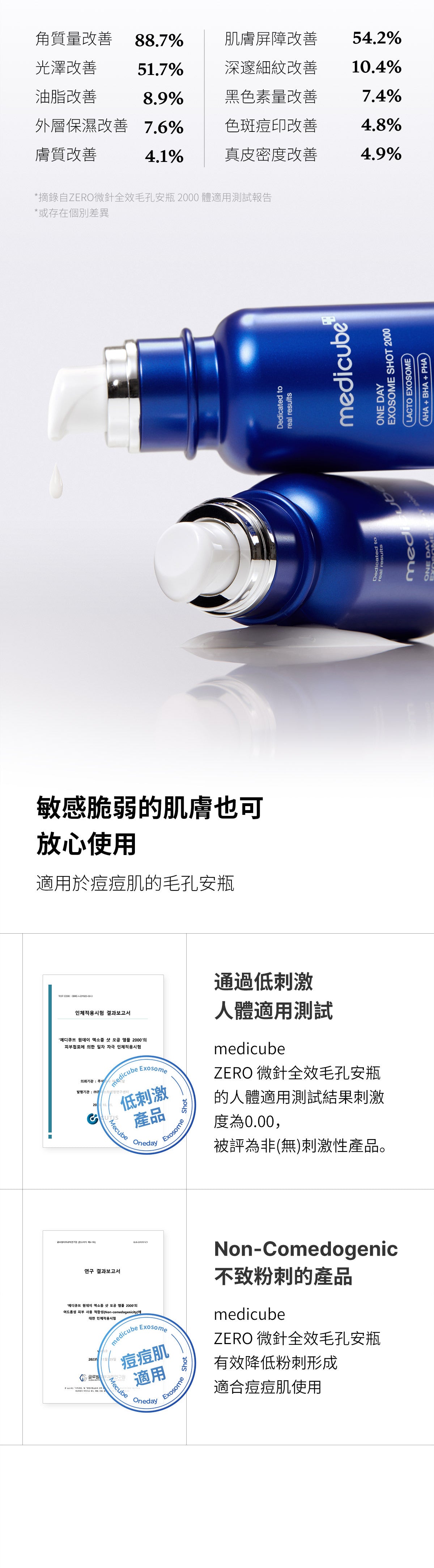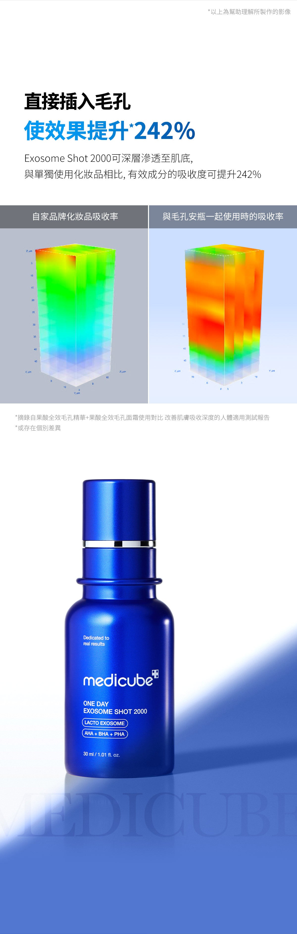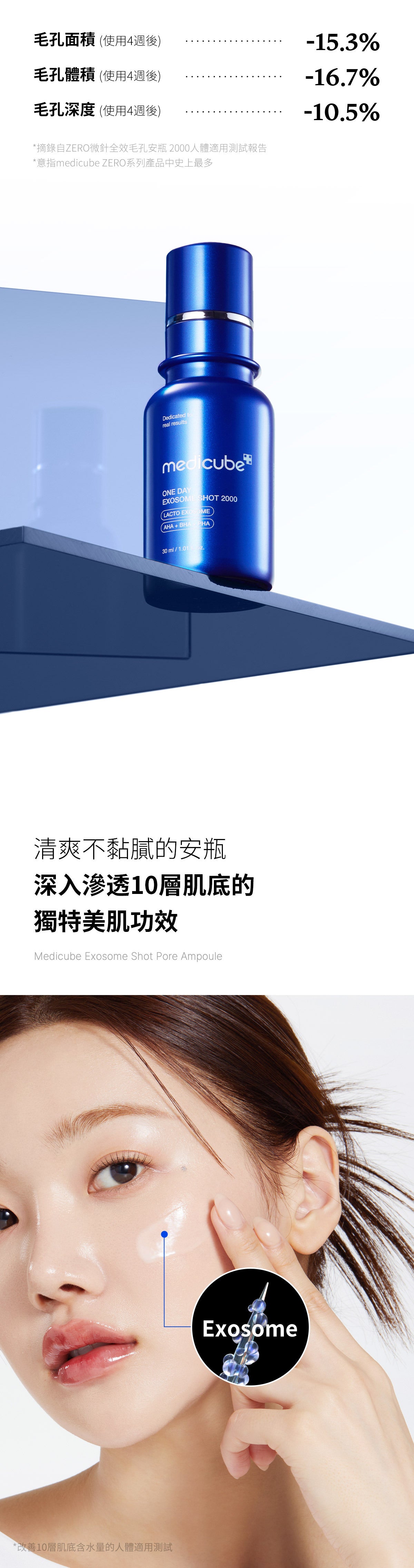 與單獨使用 Exosome Shot 相比,與 Exosome Shot 結合使用時,一日精華液和一日霜可將毛孔體積改善 88%,毛孔面積改善 85%。為了更有效管理毛孔,我們建議先使用 Exosome Shot Ampoule,然後使用一日精華,最後使用一日霜。