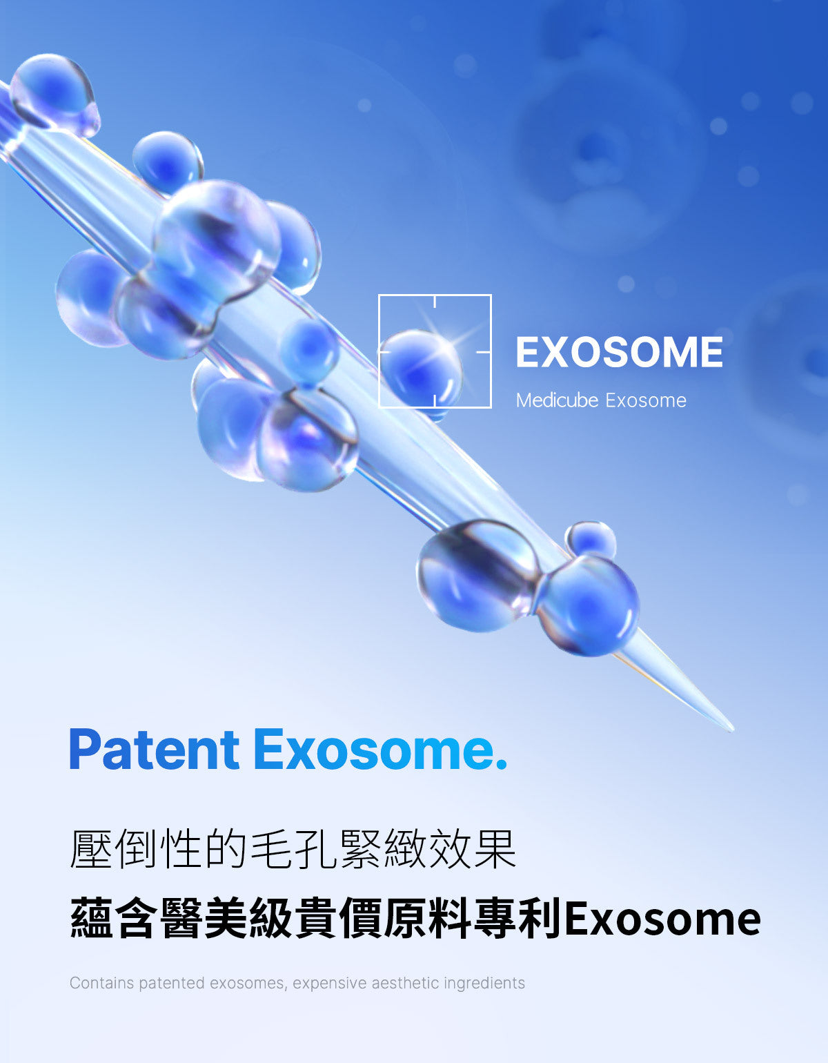 乳外泌體Medicube 的專利活性成分,有效護理受損肌膚,提供活力和能量Medicube 的專利外泌體由肽、氨基酸、穀胱甘肽和維生素等多種活性成分組成,可解決日常皮膚問題,促進自然皮膚健康。