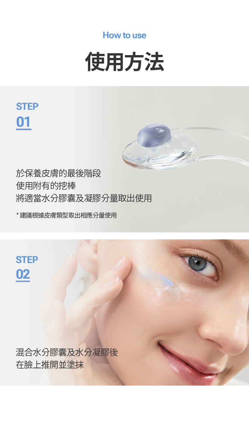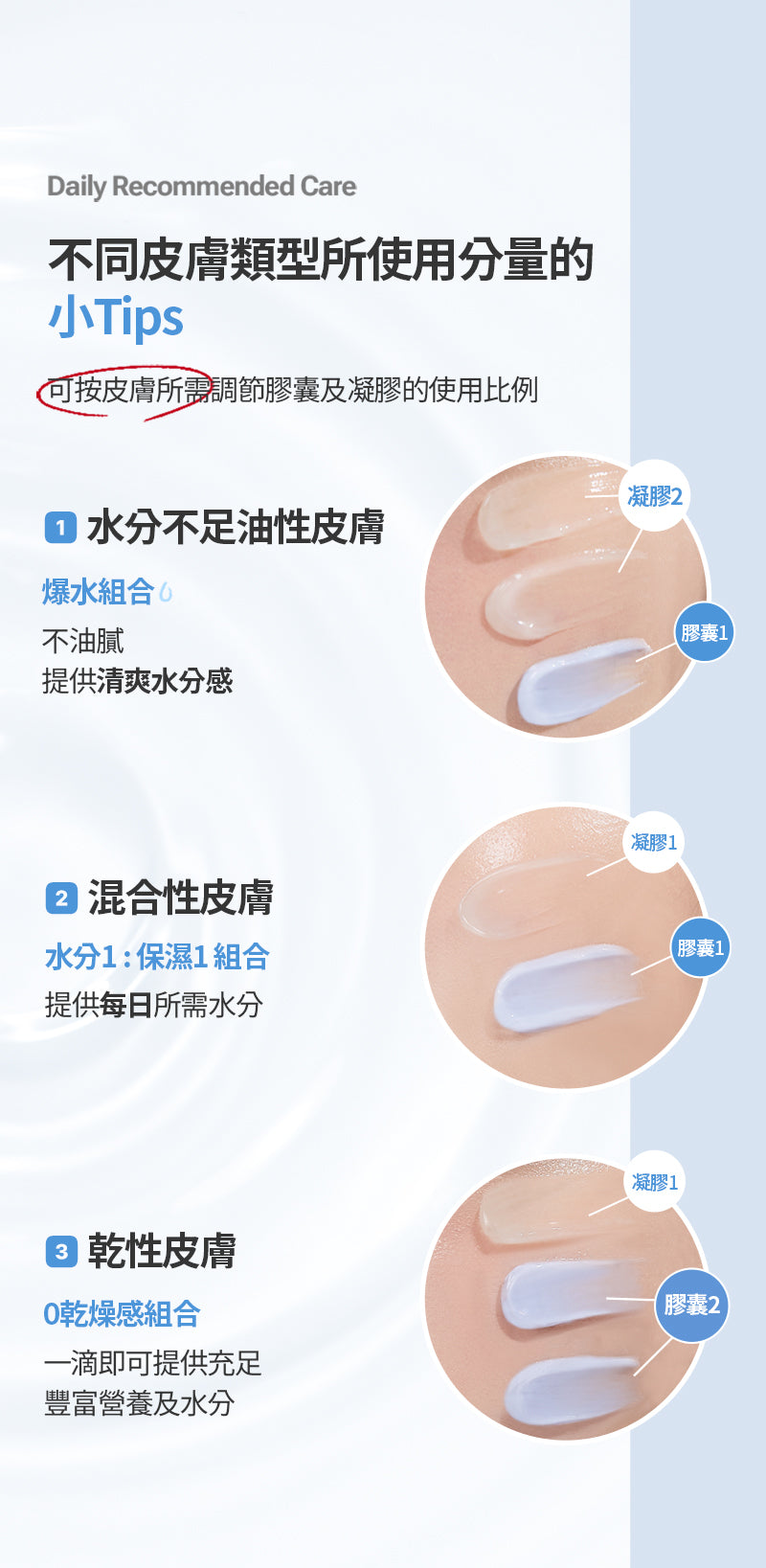 ✔️【自由調節水分膠囊及凝膠分量】適合不同皮膚類型每日使用