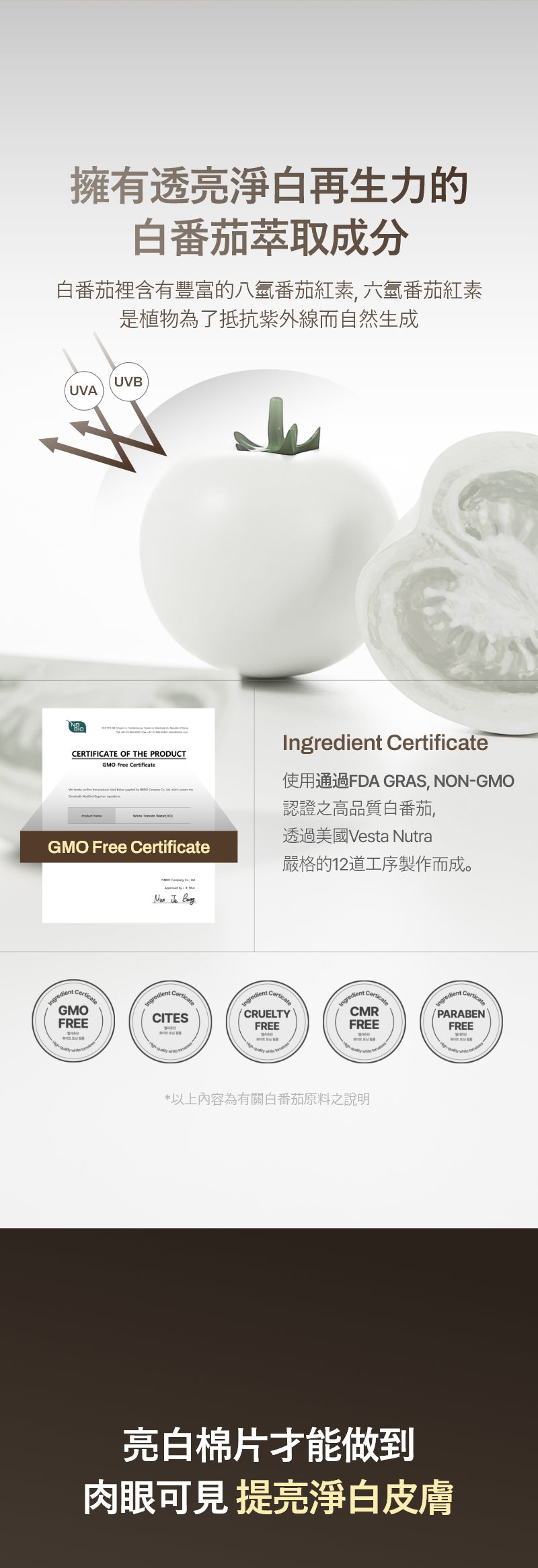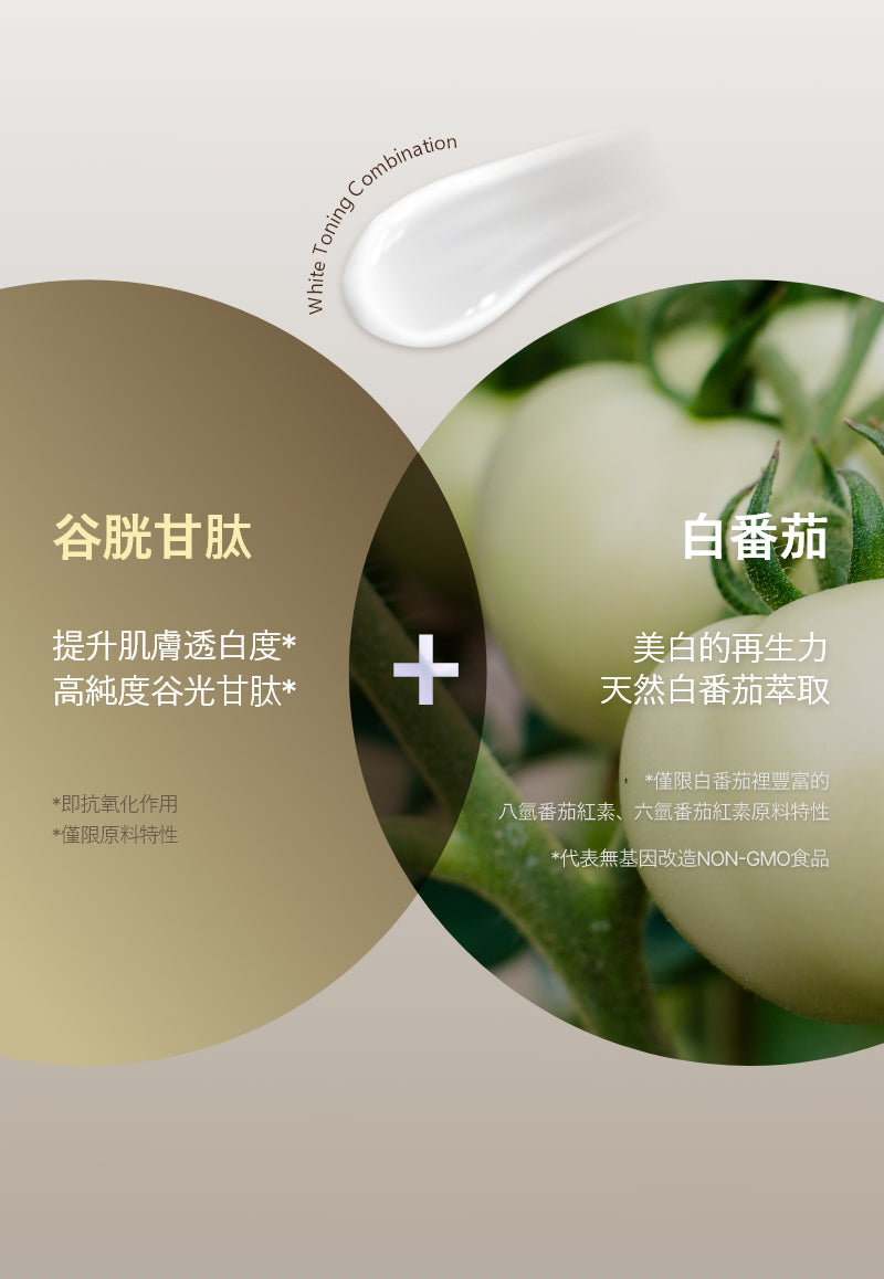 🤍含有高純度「谷胱甘肽」與「白番茄萃精華」等7種美白成分配方
