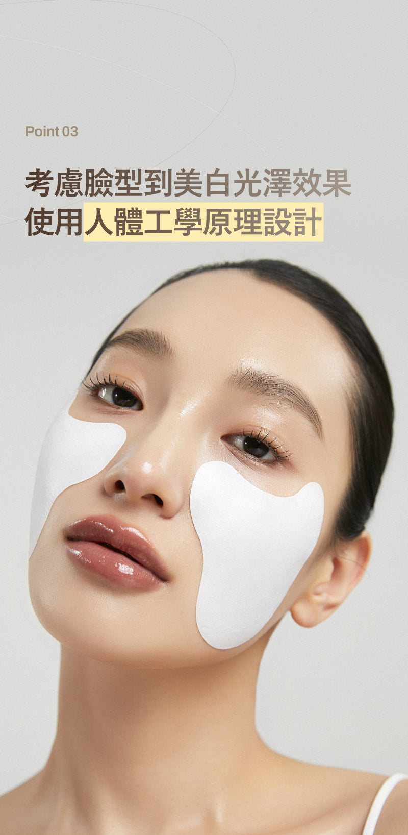 🤍特殊大面積剪裁,覆蓋顴骨位置,有效加強美白並達至膚色均勻