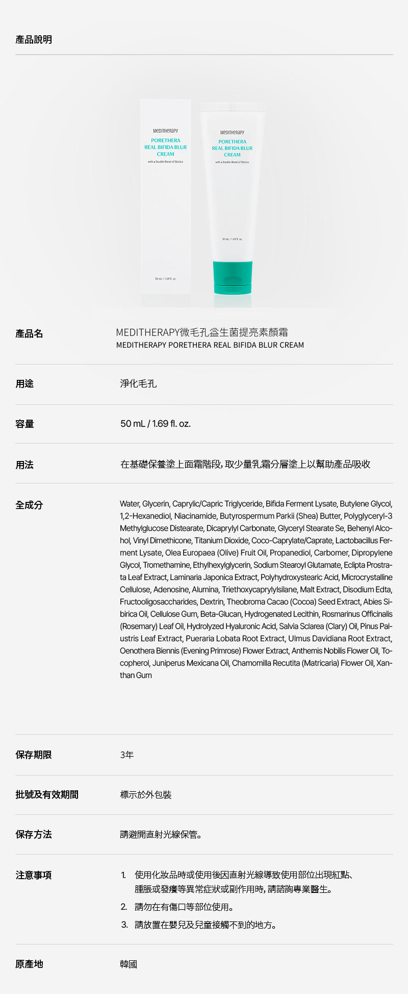 Meditherapy - Porethera Real Bifida Blur Cream [50ml]