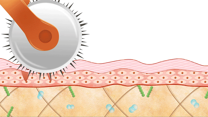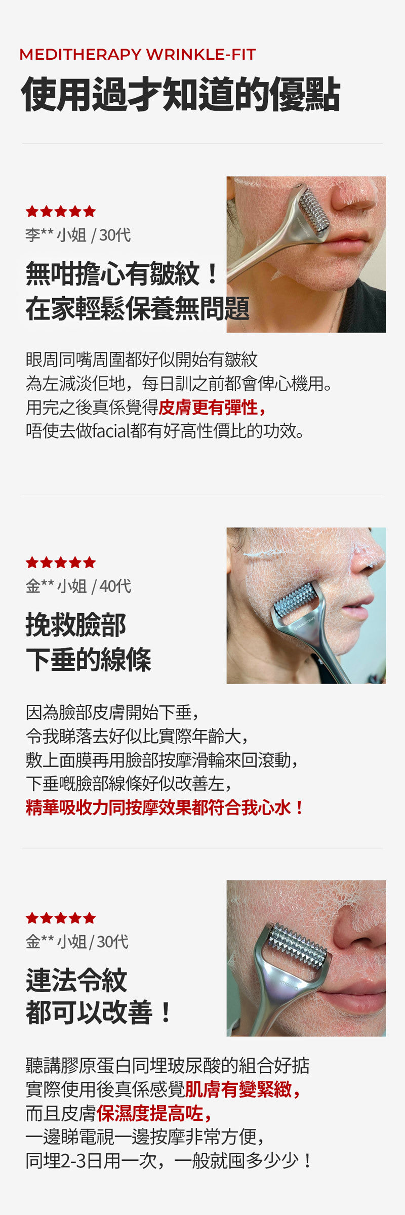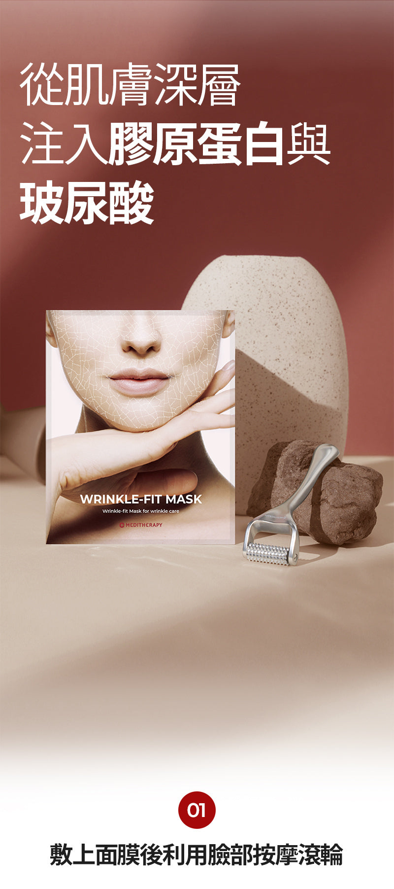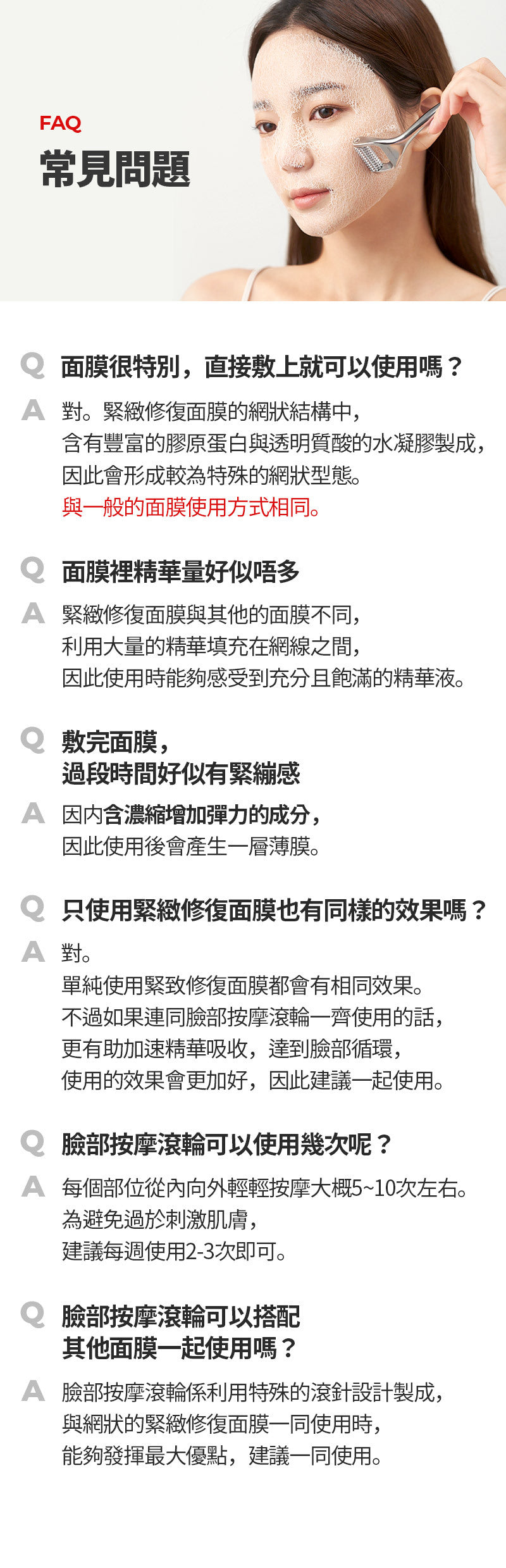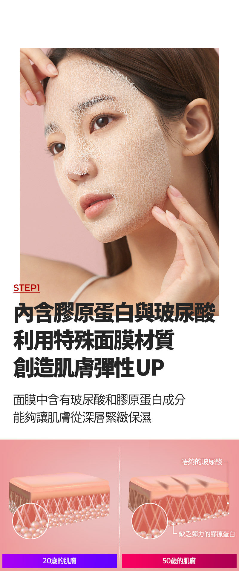 將儀器在面膜紙上滾動。膠原蛋白和玻尿酸將更容易被肌膚吸收。