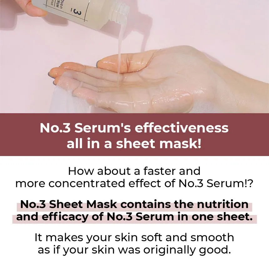 此外,No.3 面膜亦富含具高效抗氧化功效的半乳糖和雙歧桿菌,兩者可共同軟化、滋潤皮膚,令您容光煥發、綻放年輕光采。柔軟透氣的面膜材料完美貼合臉部,感覺舒適,亦讓滋養配方可深入毛孔,發揮最大功效。