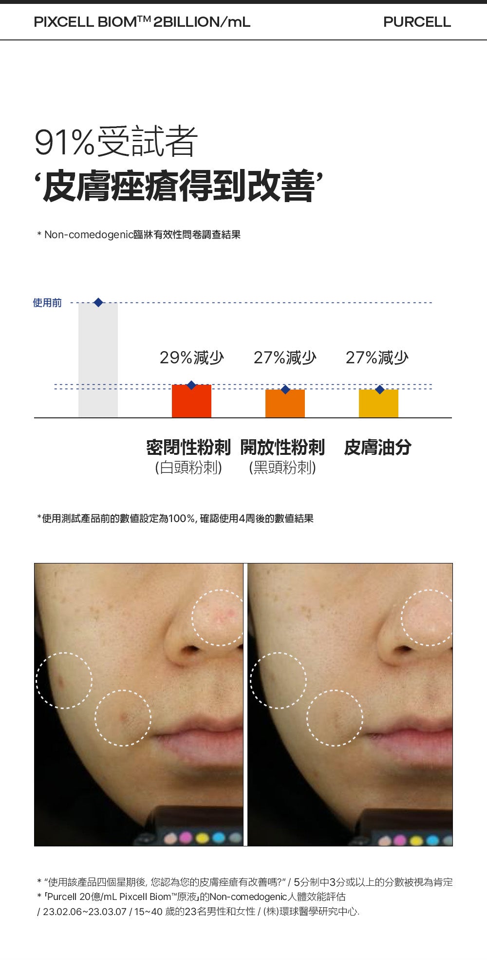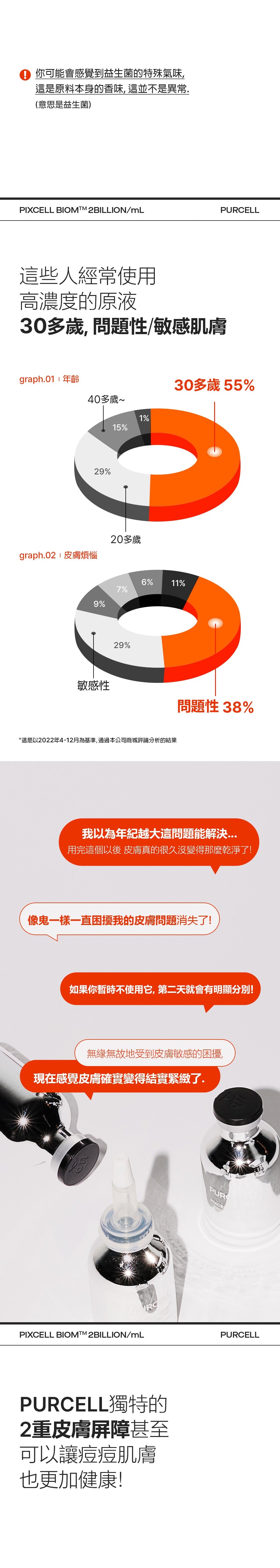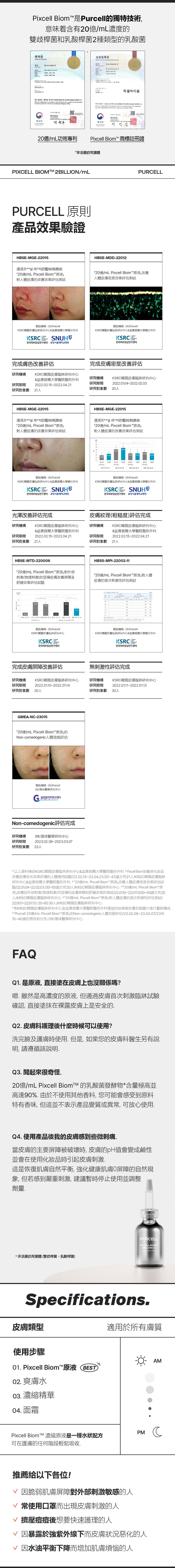 Pixcell Biom 源自濃縮液,富含 90% 的乳酸菌,具有強化屏障作用,改善皮膚屏障。強化肌膚屏障,保護肌膚免受外部刺激,有效舒緩受刺激的肌膚。