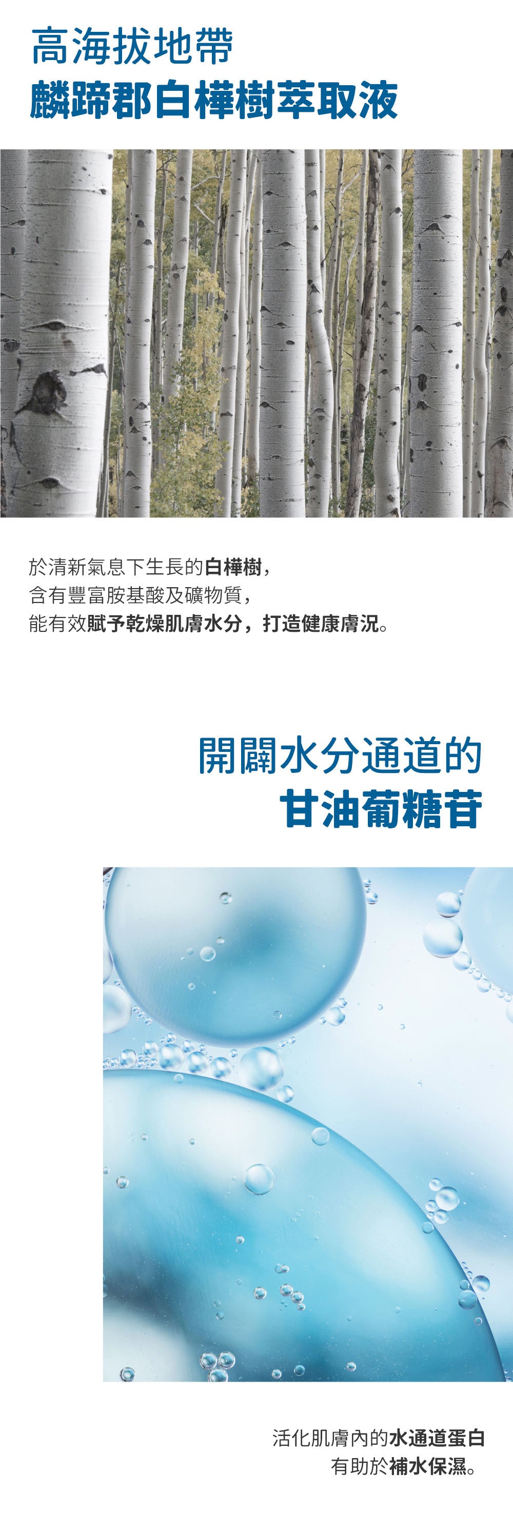 •蘊含豐富白樺樹汁,有助沁透補水,凈潤油光,均衡肌態。 添加甘草酸二鉀、印度楝葉提取物,有助舒緩保濕,修護肌膚,強韌皮障。
