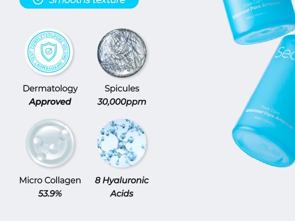 Seapuri Spicuraxel Pore Ampoule 是一款來自韓國 Seapuri(海純)品牌的毛孔護理安瓶,容量為 30ml,專為粗大毛孔、黑頭粉刺和不均勻肌膚紋理設計。品牌以「Sea」(海洋)和「Purity」(純淨)為理念,利用純淨海水和天然成分,提供頭皮護理、肌膚護理和身體護理產品。此安瓶採用獨家「Spicuraxel」技術,結合微米級海藻矽針(Spicules,濃度達 30,000ppm)、300Da 低分子膠原蛋白和 8 種透明質酸,模擬微針滾輪效果,深入肌膚清除老廢角質、收緊毛孔,並強化肌膚屏障,帶來類似美容院雷射的在家護理體驗。產品質地輕盈,吸收快速,不黏膩,適合油性、混合性、敏感或正常肌膚使用,已獲 SCI 論文認可,並取得舒緩肌膚成分專利及臨床測試認證,能有效改善黑頭粉刺和粗大毛孔。