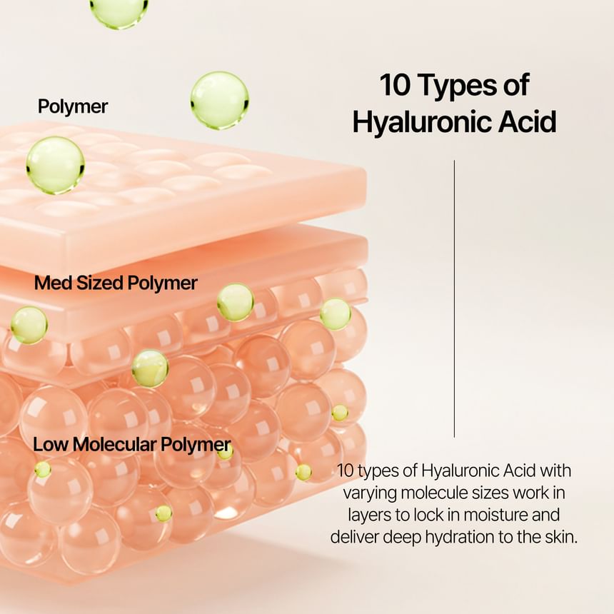 深層保濕:配方含有 60% 蘆薈葉汁和 10 種不同分子量的透明質酸複合物,從低分子量到高分子量,為皮膚提供多層次的深層補水和持久鎖水效果。