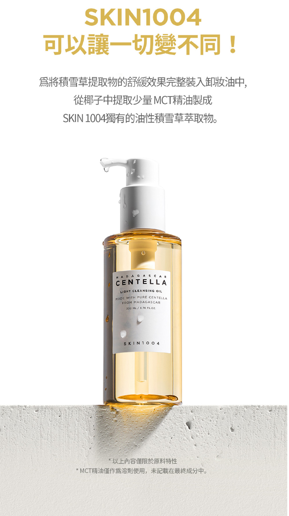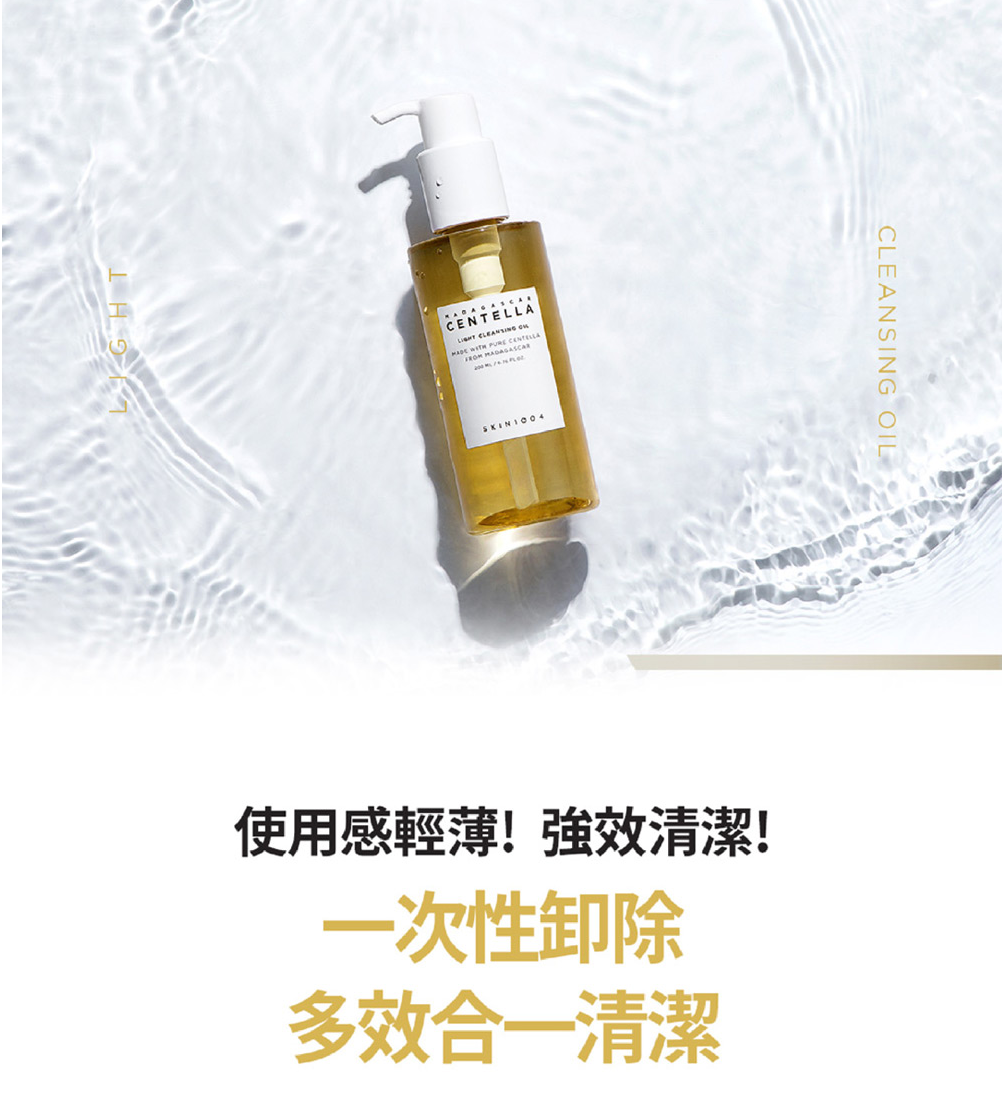 Skin1004 理膚天使的積雪草輕盈卸妝油是一款多合一的潔面產品,當中的馬達加斯加積雪草萃取及 6 種植物油可溫和溶解化妝品、防曬霜及皮膚上多餘的油脂。